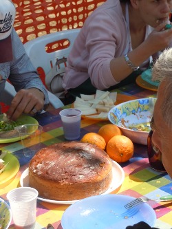 Kazdy przyniosl cos do jedzenia i dzielil sie z pozostalymi. Ja zrobilam dwie ogromne miski warzywnej salatki z topinambur oraz wielkanocne ciasto wypiekane na Wielkanoc o nazwie Schiacciata di Pasqua. Prawde mowiac wszyscy siedzacy przy stole, ktorzy byli Toskanczykami, nie slyszeli o takim ciescie. Po obiedzie ustawil sie do mnie sznur zainteresowanych pan, proszacych o przepis.