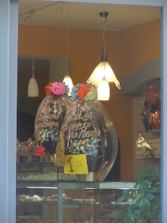 Witryna ugina sie od slodyczy i przyciaga uwage kazdego przechodnia. Wszystko o tematyce Wielkanocnej.
