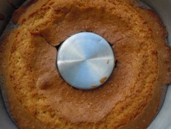 Okragla forme z dziurka smarujemy maslem. Wlewamy do niej ciasto, ktore pieczemy przez okolo 35 minut w temperaturze 180 stopni.