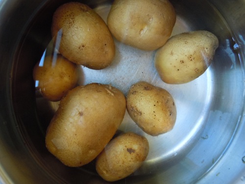 W osolonej wodzie gotujemy ziemniaki wraz ze skorka.