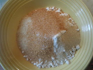 Do glebokiego naczynia wsypujemy make, cukier, sol i wlewamy wode.