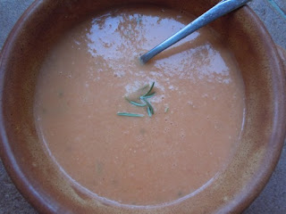 A propos jest tajemnic kulinarnych pragne podzielic sie z wami zupa z ciecierzycy. Dla tych, co lubia rozmaryn, bedzie to odkrycie roku. Przynajmniej tak mysle. Naturalnie Roberta opowiedziala mi jak przygotowac zupe, jak prawdziwa Wloszka nie podala ilosci. Musialam wiec sama wyprobowac i odtworzyc przepis.