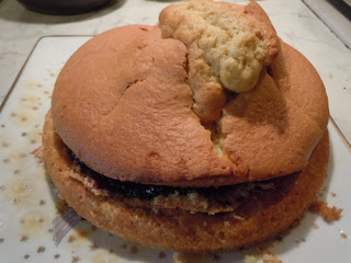 Ostudzone ciasto przekroic na pol oraz przelozyc dzemem.