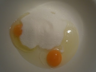 Rozpuscic drozdze w bardzo malej ilosci cieplej wody. Miskowac jaja z cukrem.