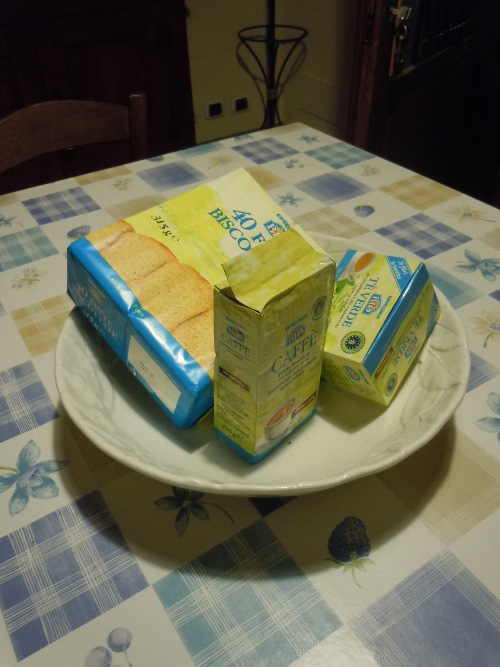 W kuchni, nie po raz pierwszy, zauwazam ze na stole stoi polmisek z paczka tostow, paczka kawy i butelka mleka. Wszystko jak najbardziej biologiczne (organiczne).