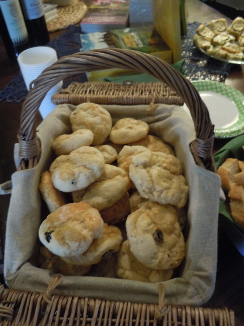 „Ależ było sympatycznie, kolorowo, interesująco i smacznie na toskańskim spotkaniu 🙂 I bardzo tłoczno, ale dzielne blogerki przygotowały tyle pyszności, że każdy mógł spróbować potraw przygotowanych wedle przepisów z książki Aleksandry Seghi 🙂 Było ciasto fasolowe (na słodko ze skórką pomarańczową – pycha!), były naleśniki kasztanowe z serem ricotta (blogerka dodała do ciasta odrobinę mąki pszennej, żeby ciasto łatwiej odchodziło od patelni) i z nutellą dla dzieci (młodą, która od dawna nie asystowała mi podczas spotkań, tym razem skusiła włoska kuchnia, oczywiście wybrała naleśnik z nutellą:), była tarta z jeżynami zrobiona przez fankę wałkowania, było ciasto cytrynowe o cudnym żółtym kolorze (dzięki sokowi z dwóch świeżych cytryn), były wreszcie przyrządzone przez bohaterkę spotkania dwa dżemy – marchewkowy i cebulowy (z czerwonej cebuli), które można było skosztować z bagietką. A do tego zdjęcia Toskanii, opowieści o toskańskiej kuchni, o włoskich teściowych i o książce „Słodkie pieczone kasztany”. Kto nie był, niech żałuje.”