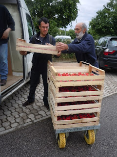 Tym razem przyjechal do nas producent truskawek i czeresni. Wszyscy wyczekiwali go z niecierpliwoscia.