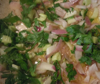 Kiedy zarumieni sie, dodajemy pokrojona: lodyge selera, natke pietruszki, boczek (ja go nie dodalam).