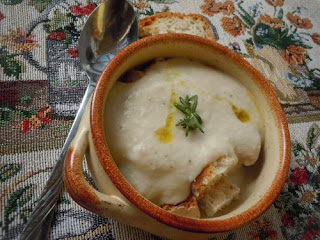 Wkladamy do glebokich talerzy i zalewamy zupa. Zupe polewamy oliwa z oliwek.