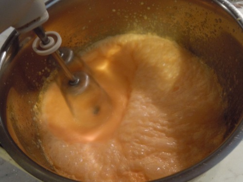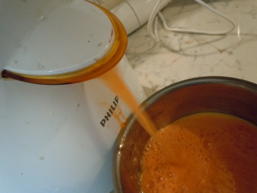 Zmiksowac w robocie kuchennym sok z cukrem, tak by rozpuscil sie w soku (ja zrobilam to mikserem).