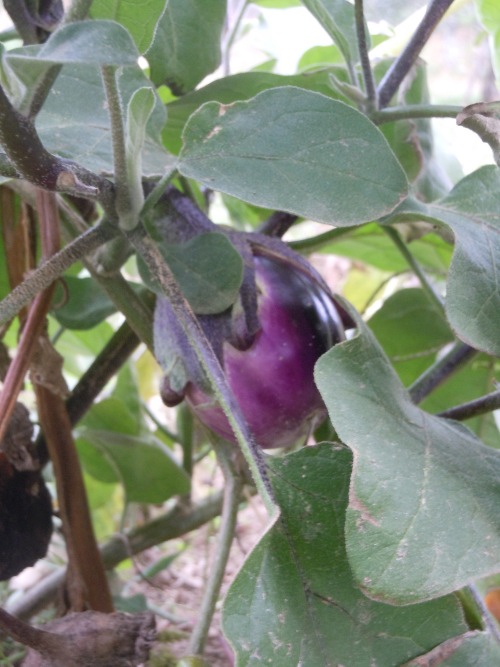 Niektore krzaczki baklazanow jeszcze kwitly, a na niektorych wisialy jasno-fioletowe