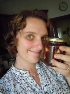 Zalac syropem czekoladowym, zakrecic sloik. Pasteryzowac przez 20 minut.