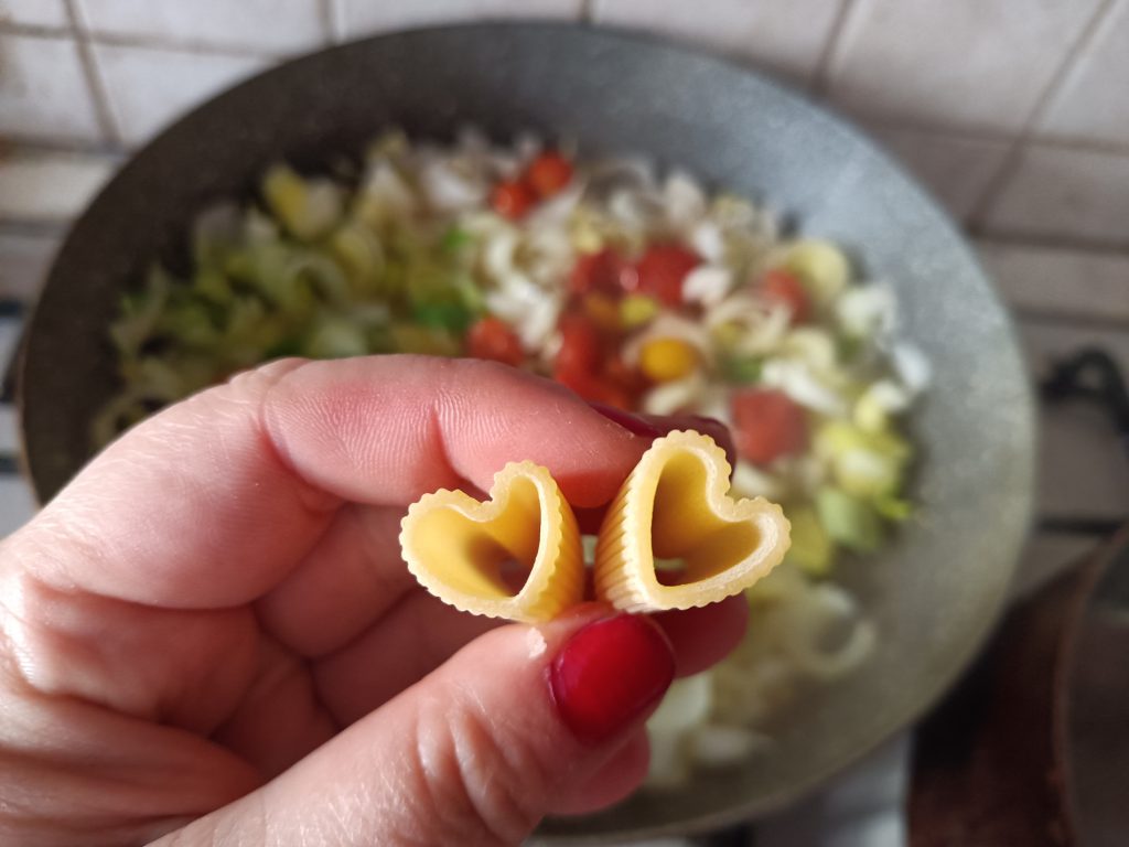 Po publikacji dania koleżanka poinformowała mnie, że również Barilla wypuściła nowy makaron, dwa połączone serduszka. Czy teraz wszyscy skopiują temat?