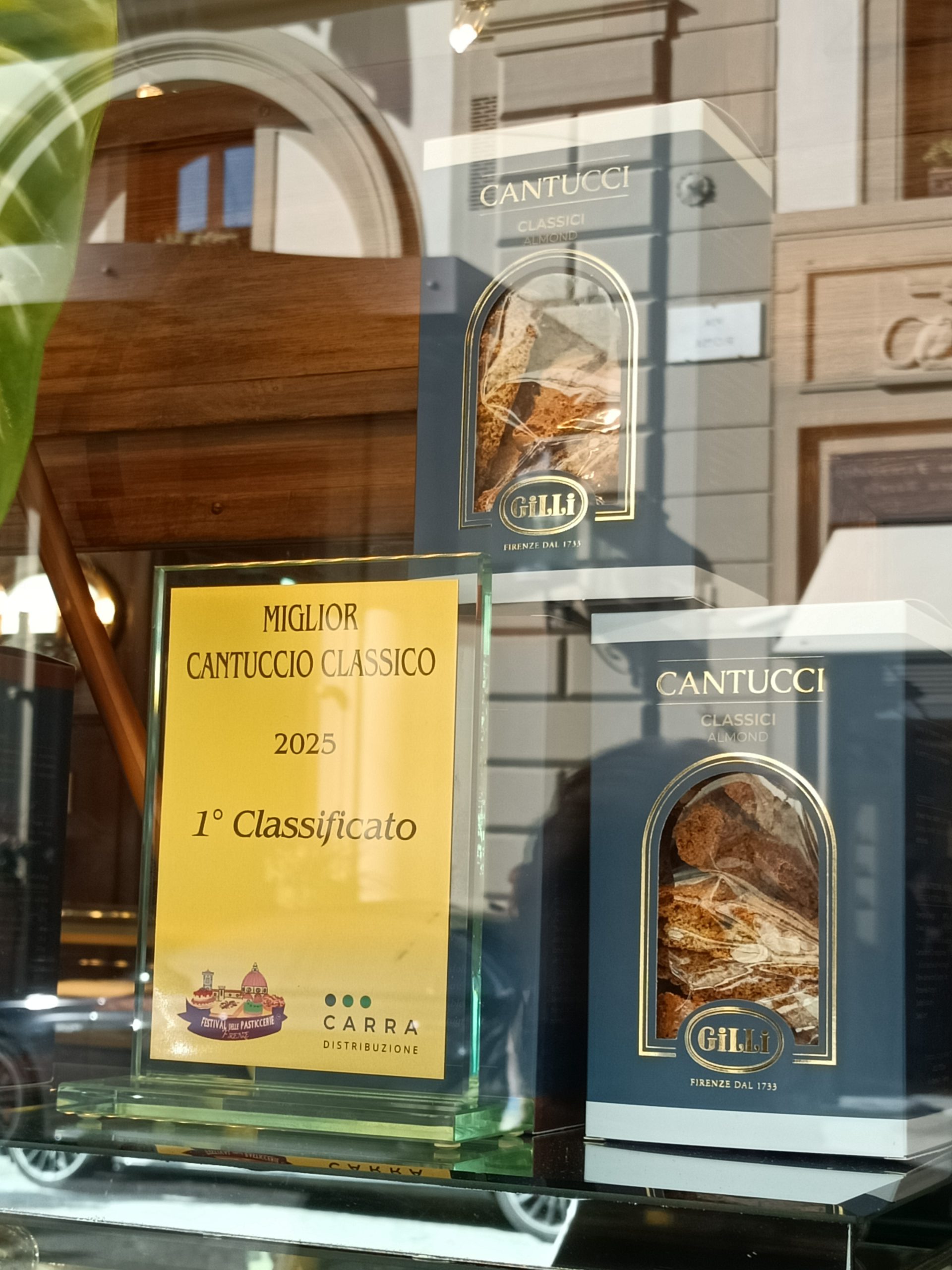 W zeszłym roku bar cukiernia Gilli dostała również nagrodę na najlepszą schiacciatę florencką, tradycyjne ciasto z Florencji. Ta słodkość wystawiona jest oczywiście w witrynie.