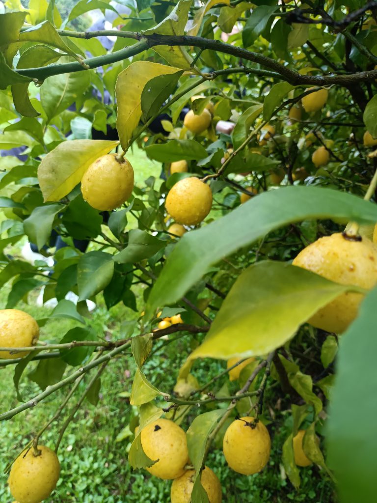 Osobiście byłam bardziej skupiona na zbiorze cytryn. Pomarańcze nie nadawały się do jedzenia, gdyż był to gatunek gorzki dobry na nalewki lub dżem. Pośród cytrusowych drzewek zauważyłam kiwi. Były malutkie, ale miałam ogromną chęć na zebranie kilku. Bez pryskania, bez chemii, sama witamina C. Jedna pani też zbierała z wnukami.