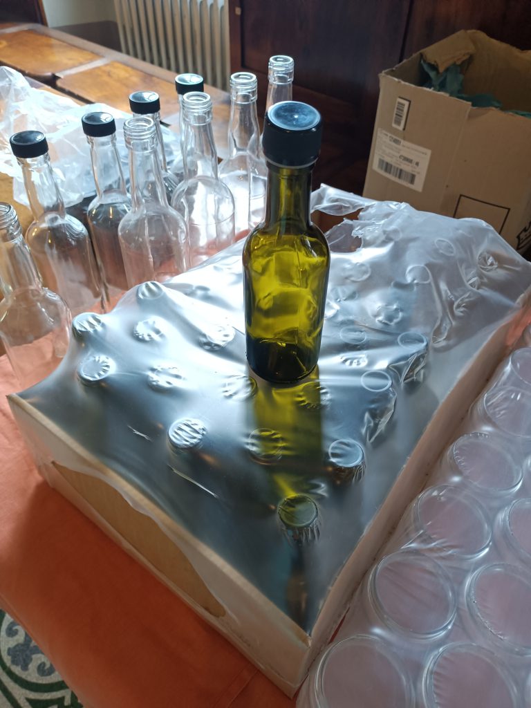 Siostry położyły do zabrania również doniczki z liśćmi laurowymi, butelki do nalewek oraz słoiki do dżemów.