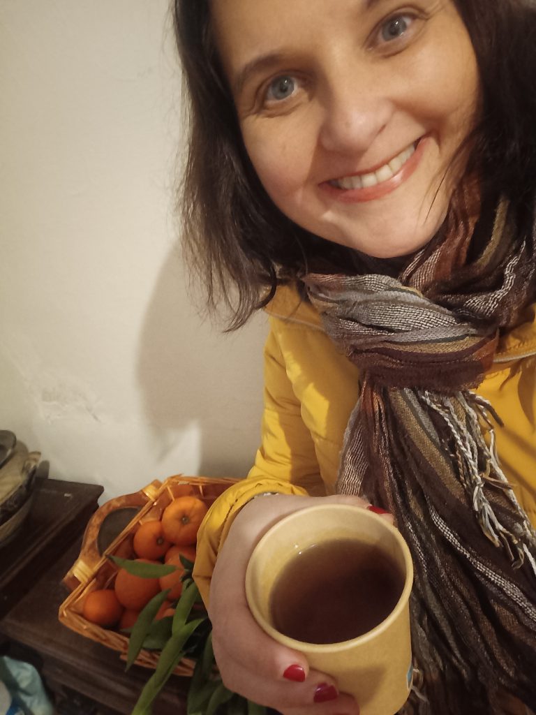 Siostry na wejściu do klasztory robiły wchodzącym lub wuchodzącym herbatę. Ale ja najpierw ruszyłam obejrzeć to co można było obejrzeć. W korytarzu rozłożone były kosze z cytrusami.
