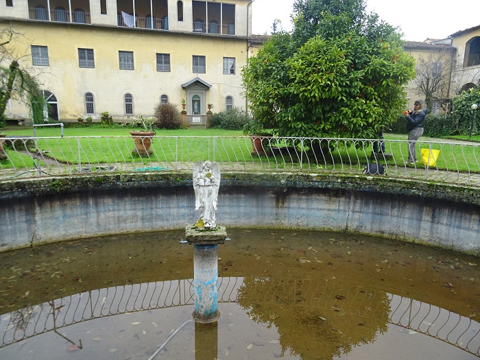 Z ogrodu rozciągał się piękny widok na kopułę kościoła w centrum miasta, kościoła Madonna dell’Umiltà. Szkoda, że było deszczowo, zdjęcia wyszły szare. Żal, że klasztor zostaje otwarty tylko raz w roku, że nie można go obejrzeć z przewodnikiem, posłuchać historii.