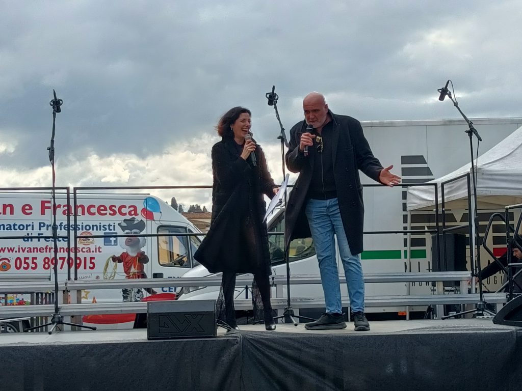 Na scenie oprócz prowadzących pojawił się aktor Alessandro Calonaci przebrany za Stenterello, jedyną florencką maskę karnawałową oraz teatralną (we Florencji), która narodziła się właśnie w dzielnicy Borgo Ognissanti. Wymyślił ją w XVIII wieku florencki aktor Luigi Del Buono.