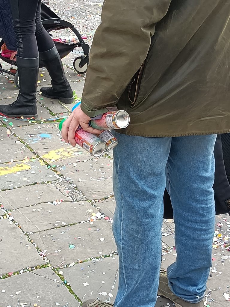 Dzieci miały radość w psikaniu się tzw. spaghetti (takie gluciki w sprayu) oraz obrzucaniem się konfetti. Plac był tym pokryty w całości.