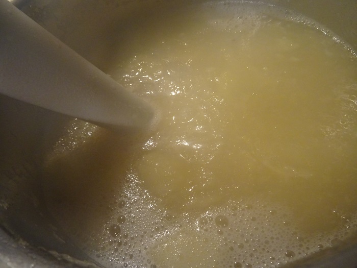 Gotować do momentu kiedy jabłka będą miękkie. Zmiksować blenderem, pulpa może wydawać się płynna, ale w słoikach zgęstnieje.