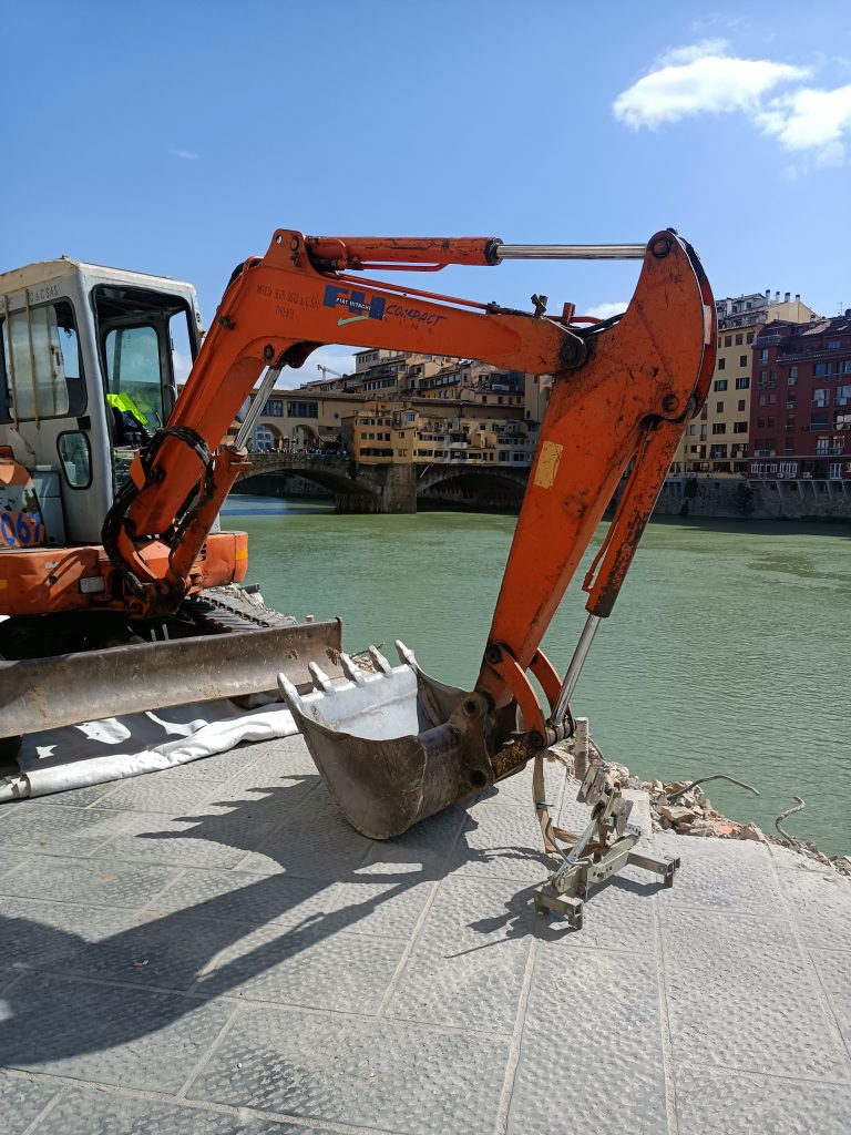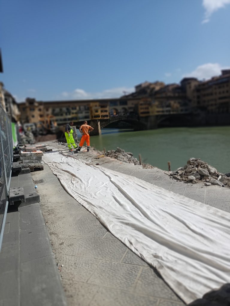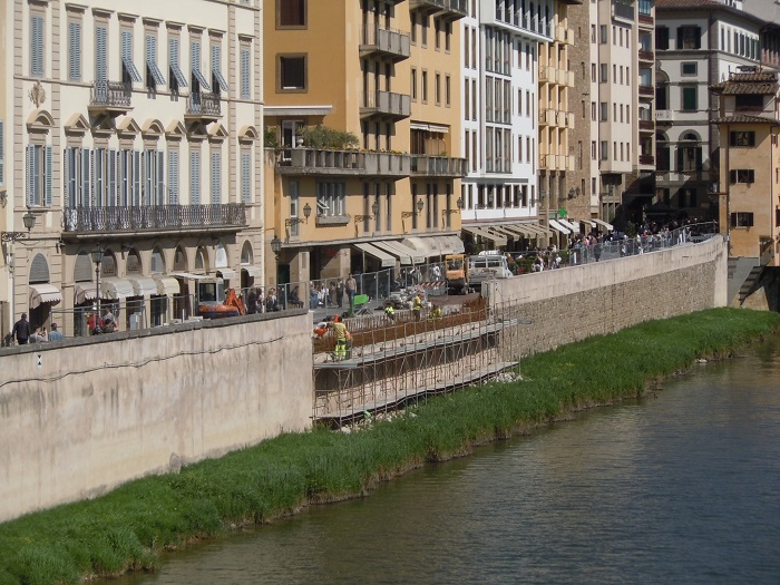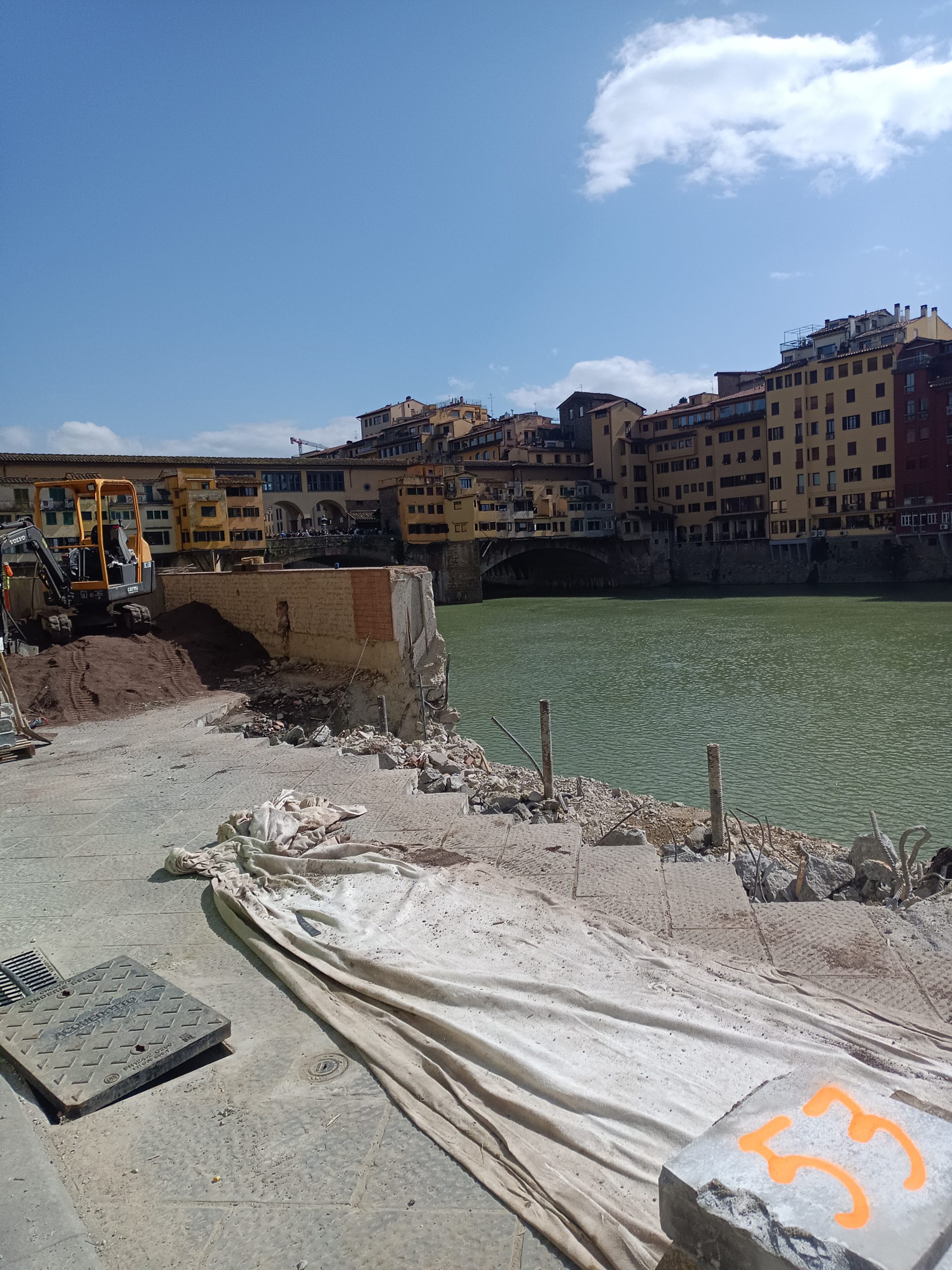 Od jakiegoś czasu trwają prace w okolicach Ponte Vecchio. Najpierw zryto chodnik wzdłuż Arno, a teraz zburzono nawet mur.