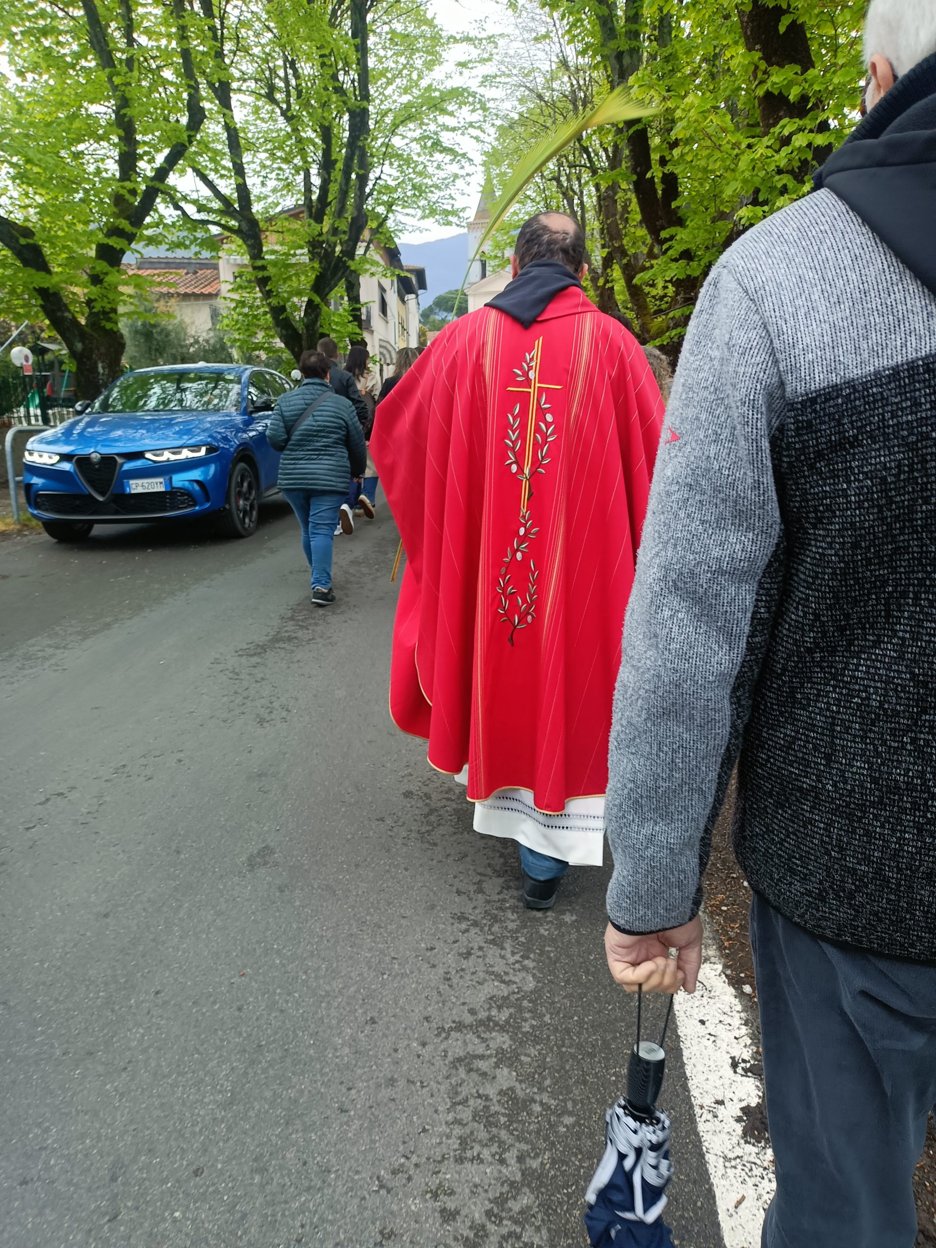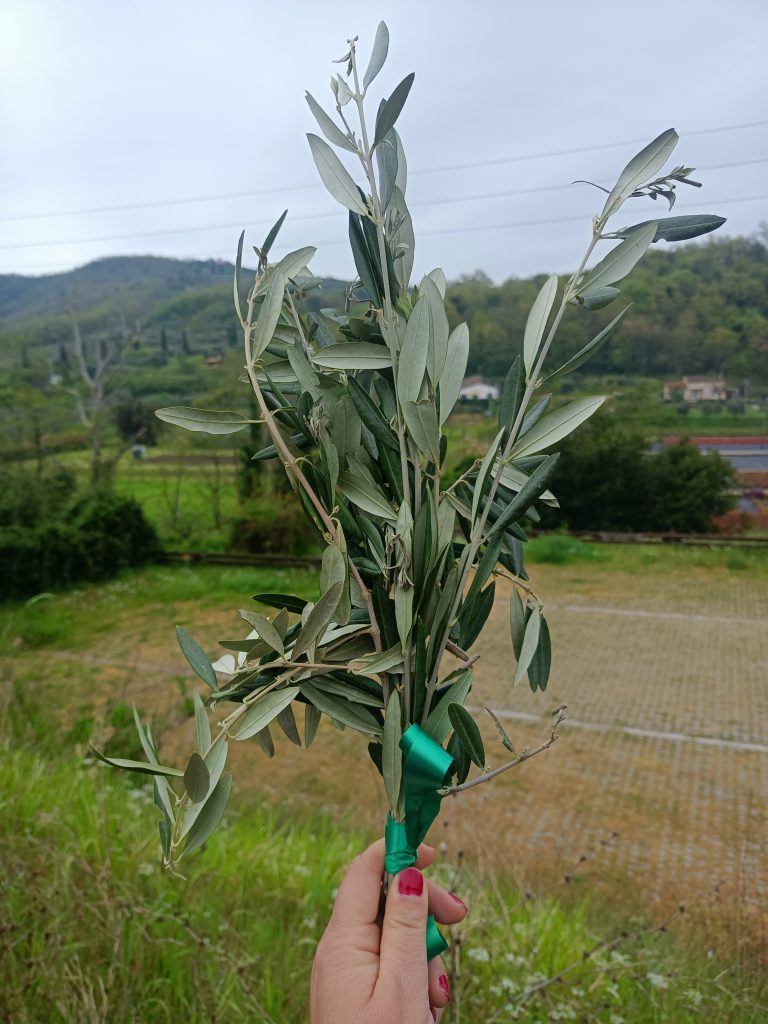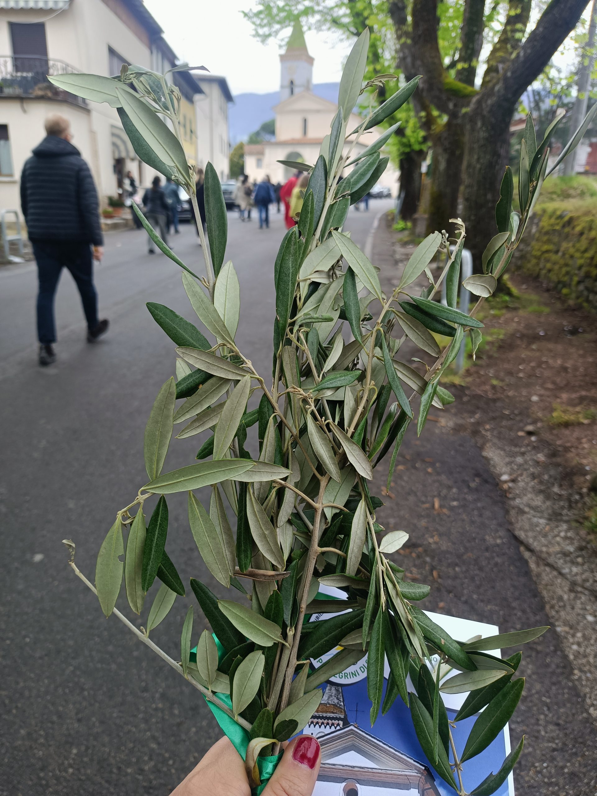 Dzisiaj przed godziną 11 w Valdibrana odbyła się procesja z jednego kościoła do drugiego. Niektórzy mieli piękne wiązanki palemkowe. Jedna pani zrobiła nawet okrągła kompozycję z liści laurowych i gałązek oliwnych.