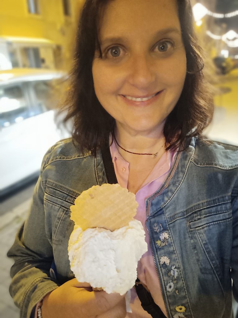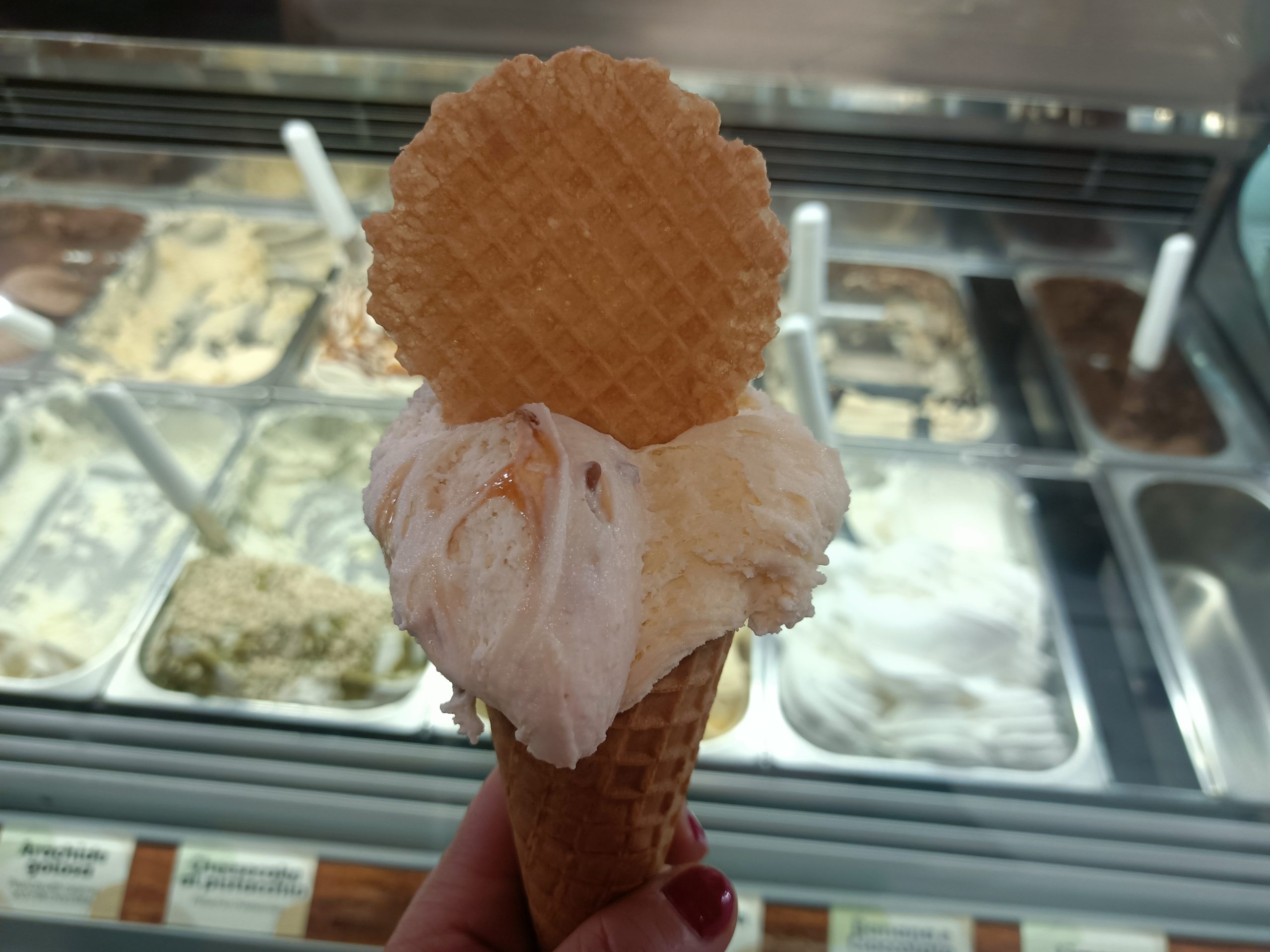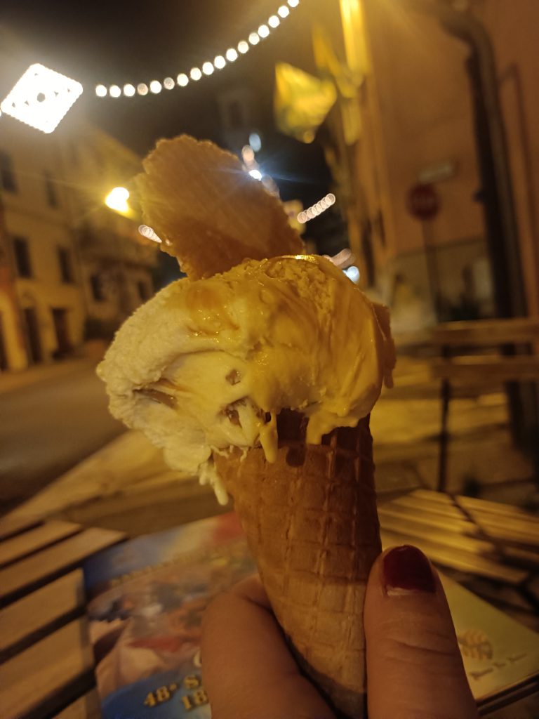 Okazało się, że w lodziarni w Calcinaia są lody o smaku nozzy. Zamówiłam sobie je wraz ze słonym karmelem.