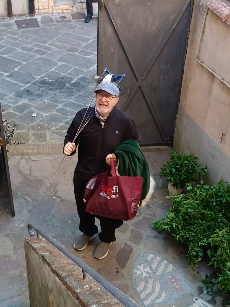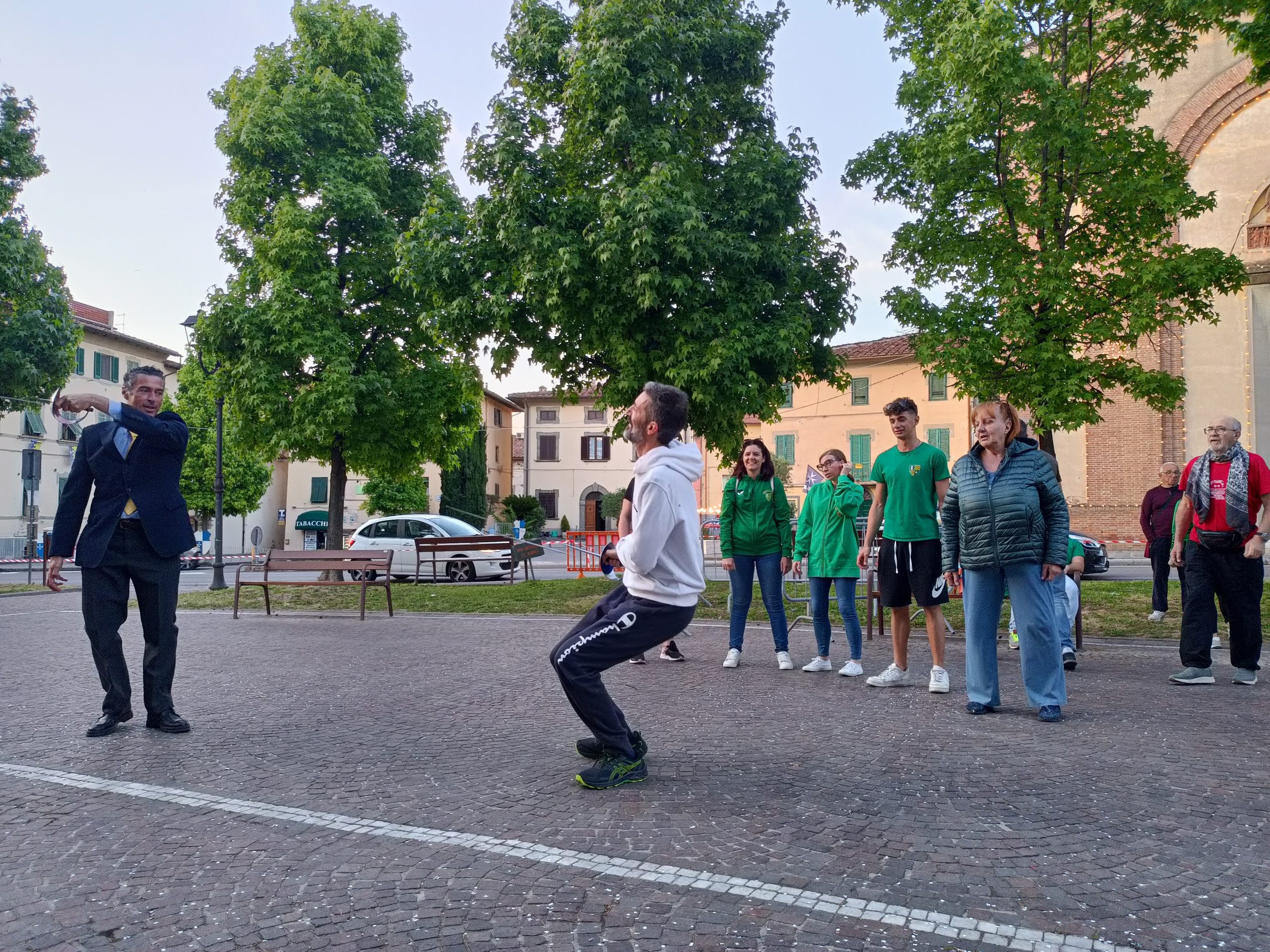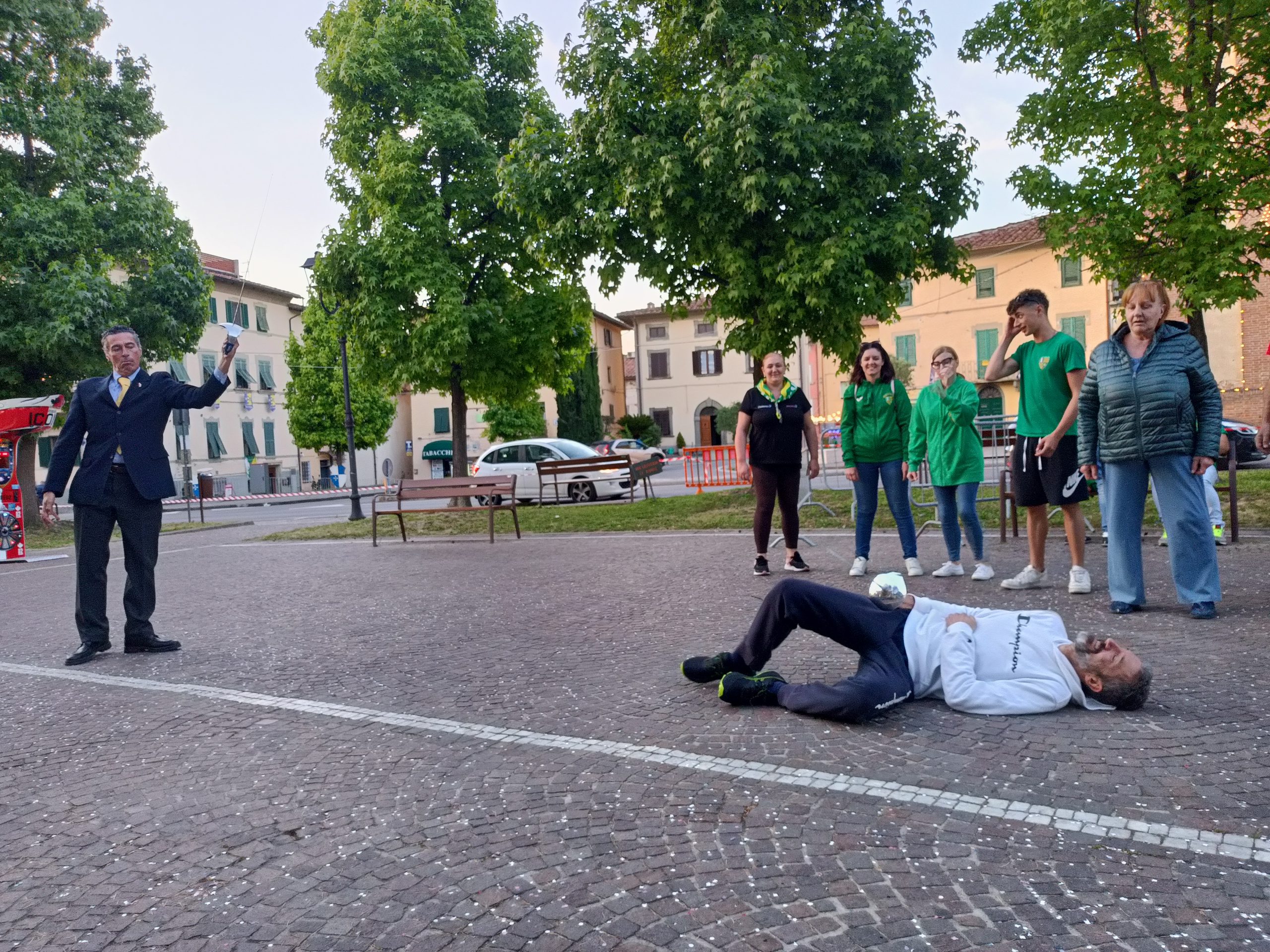 Po próbach kostiumowych przeszliśmy na plac, gdzie omawiano kwestię walki. Ustawiła się grupka osób z Rione La Nave i wymyślała, jak ta walka ma wyglądać. Kto ma paść na ziemię, komu ma wypaść szabla z rąk. Przyszedł też mężczyzna, który będzie grał rolę umarłego. Jeszcze nie wiemy kiedy jest jego kolejne tej całej paradzie. Wszystko okaże się jutro.