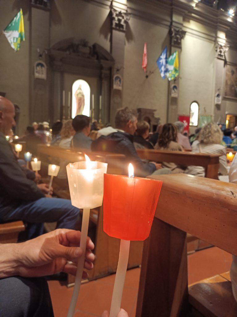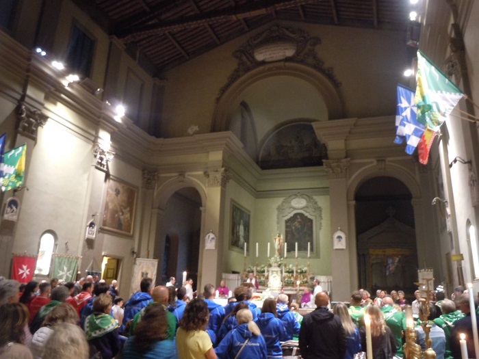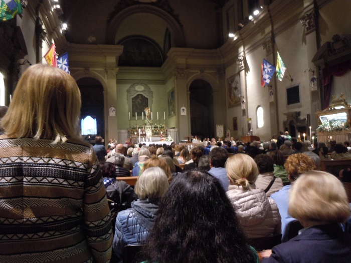 W kościele zgromadzili się mieszkańcy oraz przybyli goście. Z Pizy oraz z Perugi przyjechali Zakonnicy Maltańscy. Pierwsze ławki zajęli przedstawiciele trzech dzielnic Calcinai. Był też burmistrz miasta. Przy wejściu każdy dostawał świecę, którą potem zapalono w kościele i noszono podczas procesji.