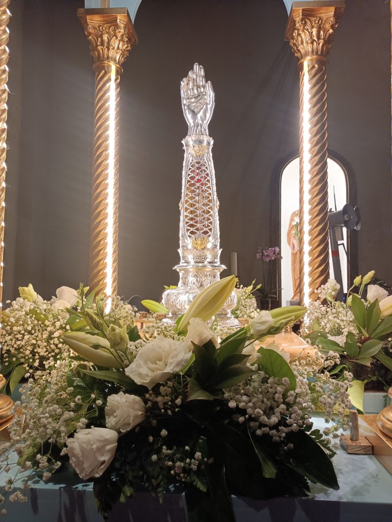 Właśnie po zapaleniu świec ksiądz poprosił wszystkich o wyniesienie relikwi Świętej Ubaldesca oraz wyjście z kościoła. W tym roku nie wyniesiono całej trumny ze Świętą lecz samą relikwię. Było nią ramię, a konkretnie kość ramieniowa włożona do srebrnego ramienia.