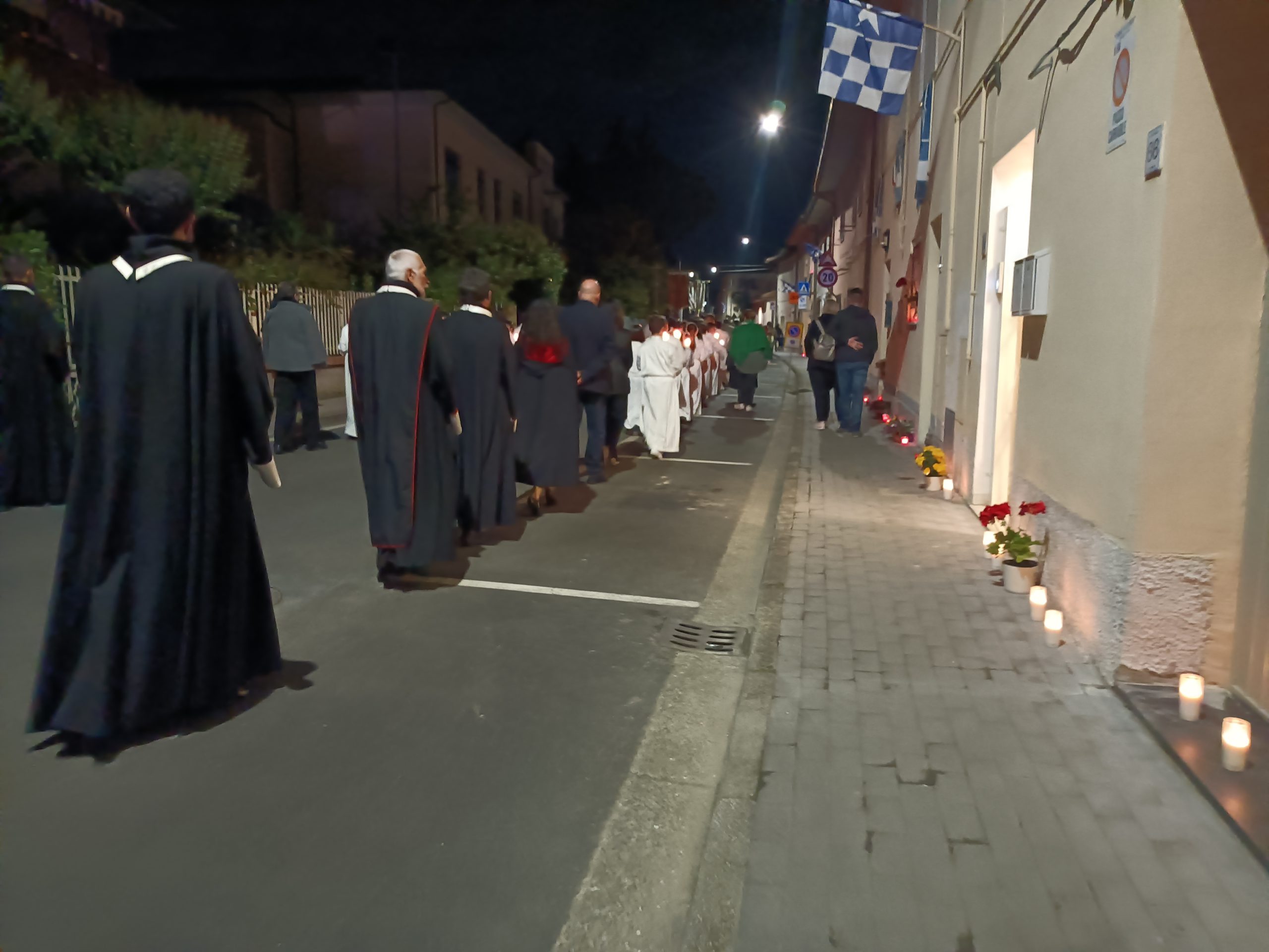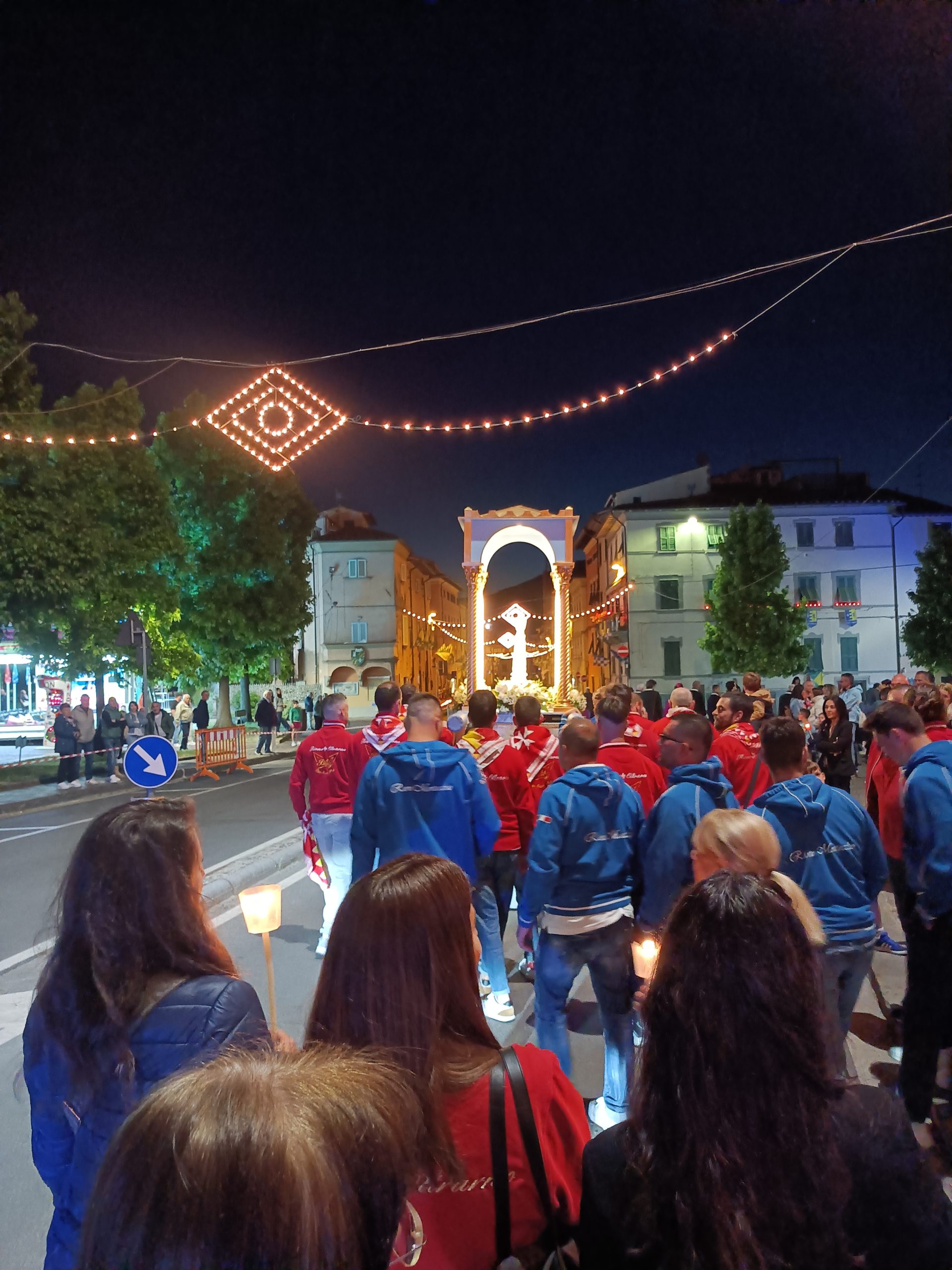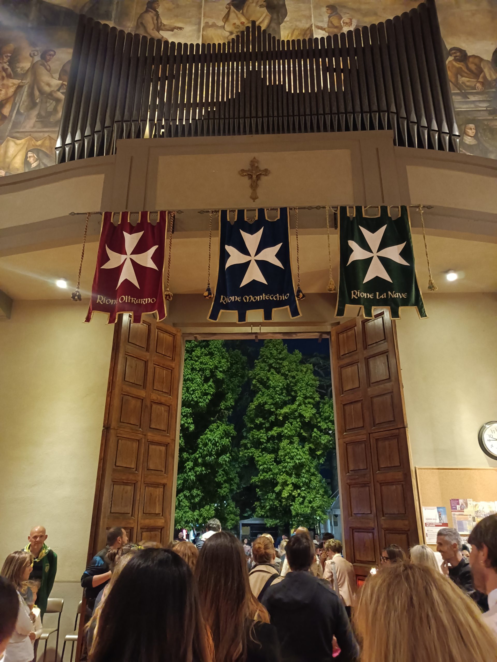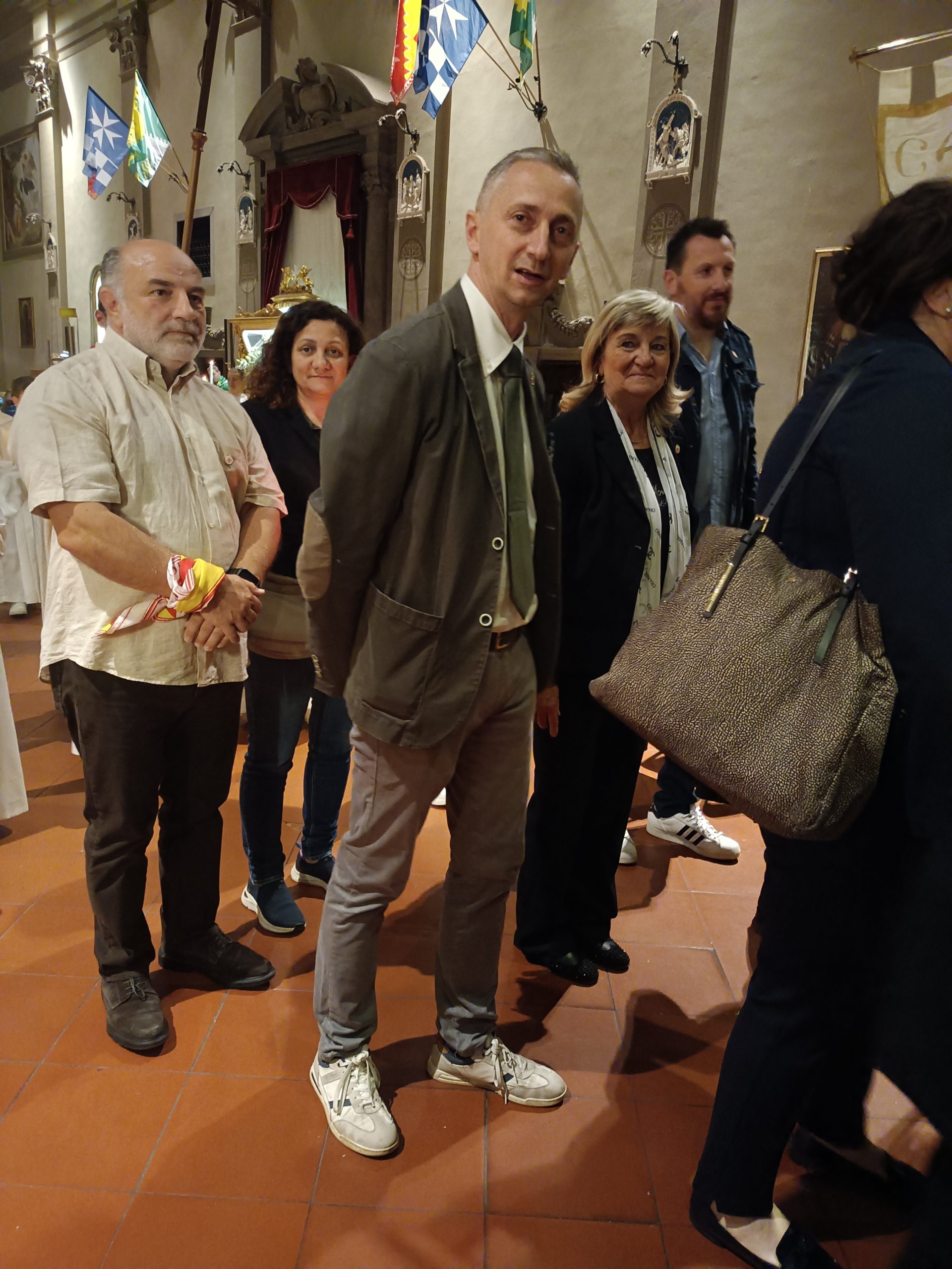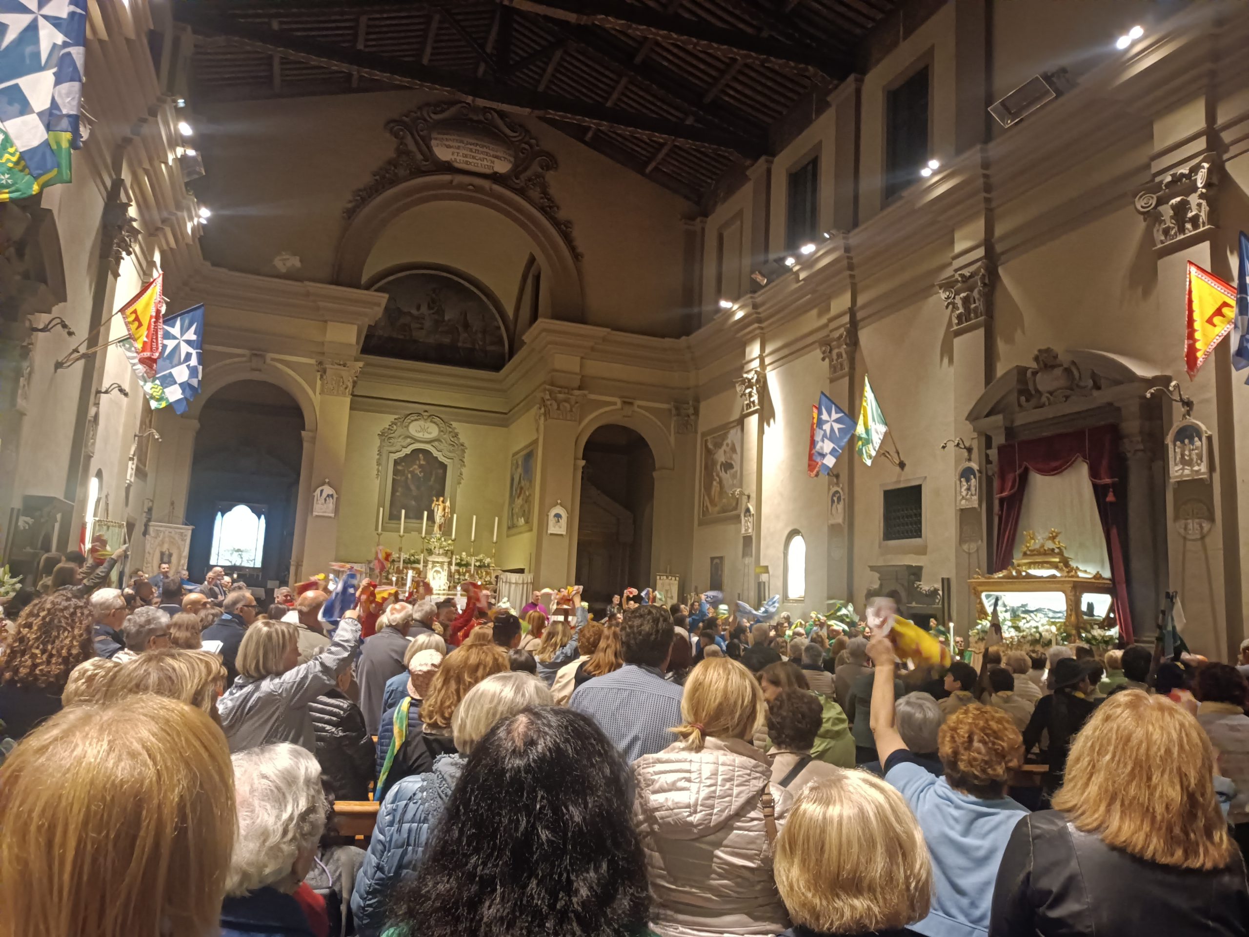 W kościele zgromadzili się mieszkańcy oraz przybyli goście. Z Pizy oraz z Perugi przyjechali Zakonnicy Maltańscy. Pierwsze ławki zajęli przedstawiciele trzech dzielnic Calcinai. Był też burmistrz miasta. Przy wejściu każdy dostawał świecę, którą potem zapalono w kościele i noszono podczas procesji.
