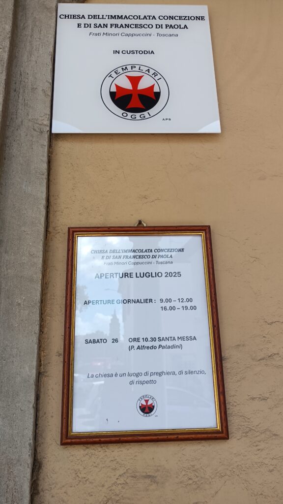 Jak wyczytałam w Wikipedii kościół nazywany jest również Chiesa di San Francesco di Paola bądź Chiesa dei Cappuccini. Pochodzi z XIV wieku. Klasztor został zamknięty w 1782 roku i w okresie napoleońskim służył jako huta. Od 1866 roku do 2012 roku żyli tu Mniejsi Bracia Kapucyni, później klasztor został zamknięty. Obecnie kościołem zajmują się Nowi Templariusze (Templari di Oggi). Nawiązują do tradycji zakonu Templariuszy powstałego w XII wieku w Ziemi Świętej.