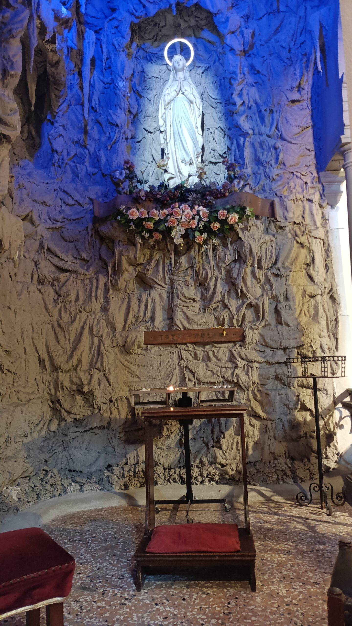 W pierwszej nawie po lewej stronie znajduje się kaplica poświęcona Madonnie. Mam wrażenie, że jest tu nawiązanie do Madonny z Lourdes.