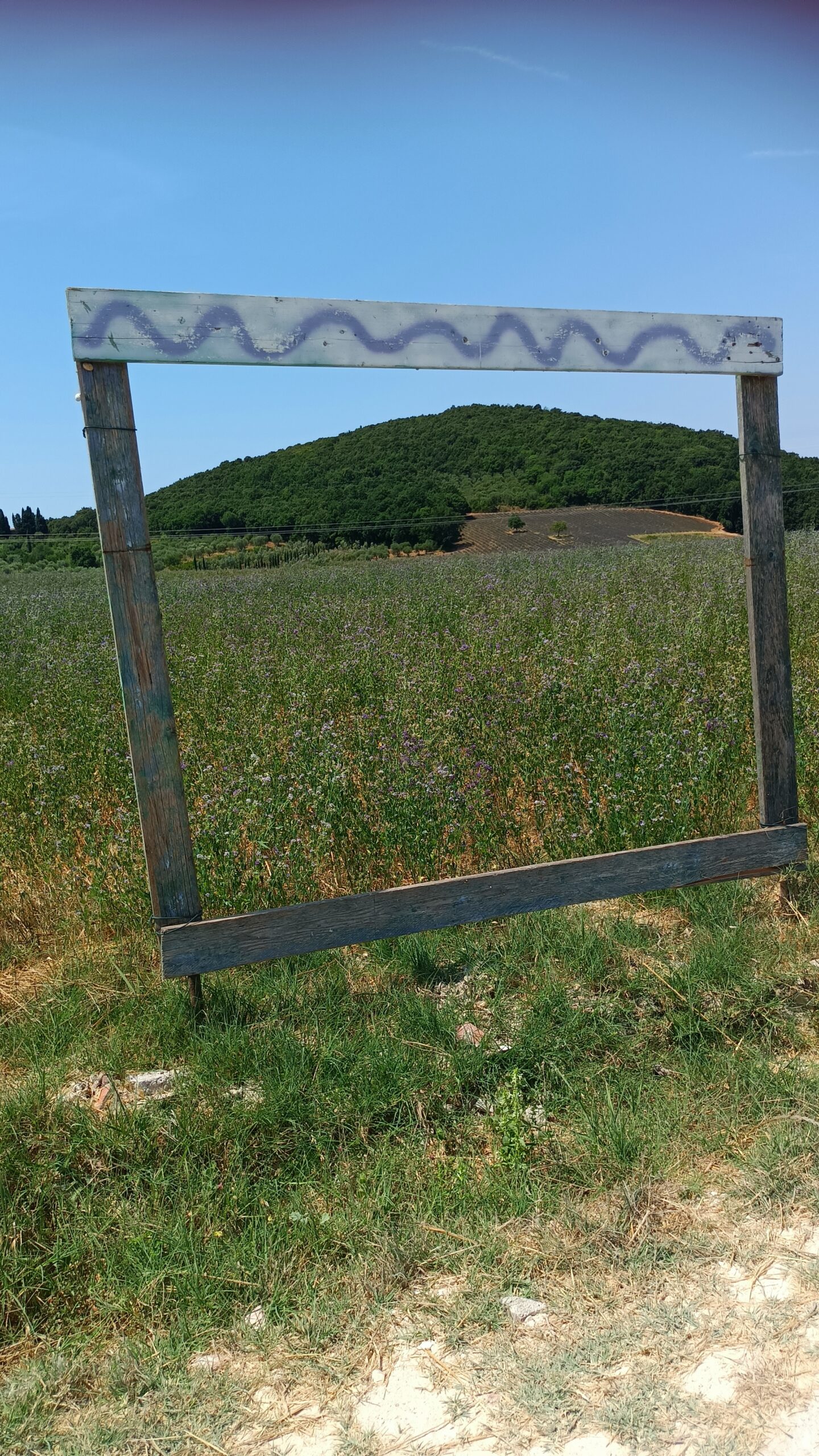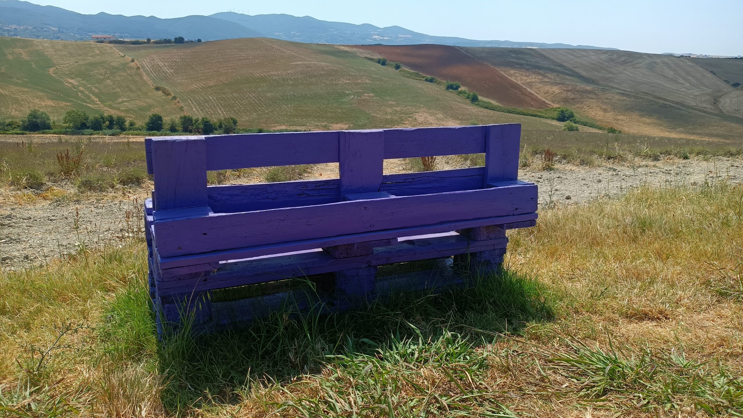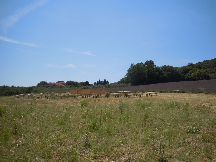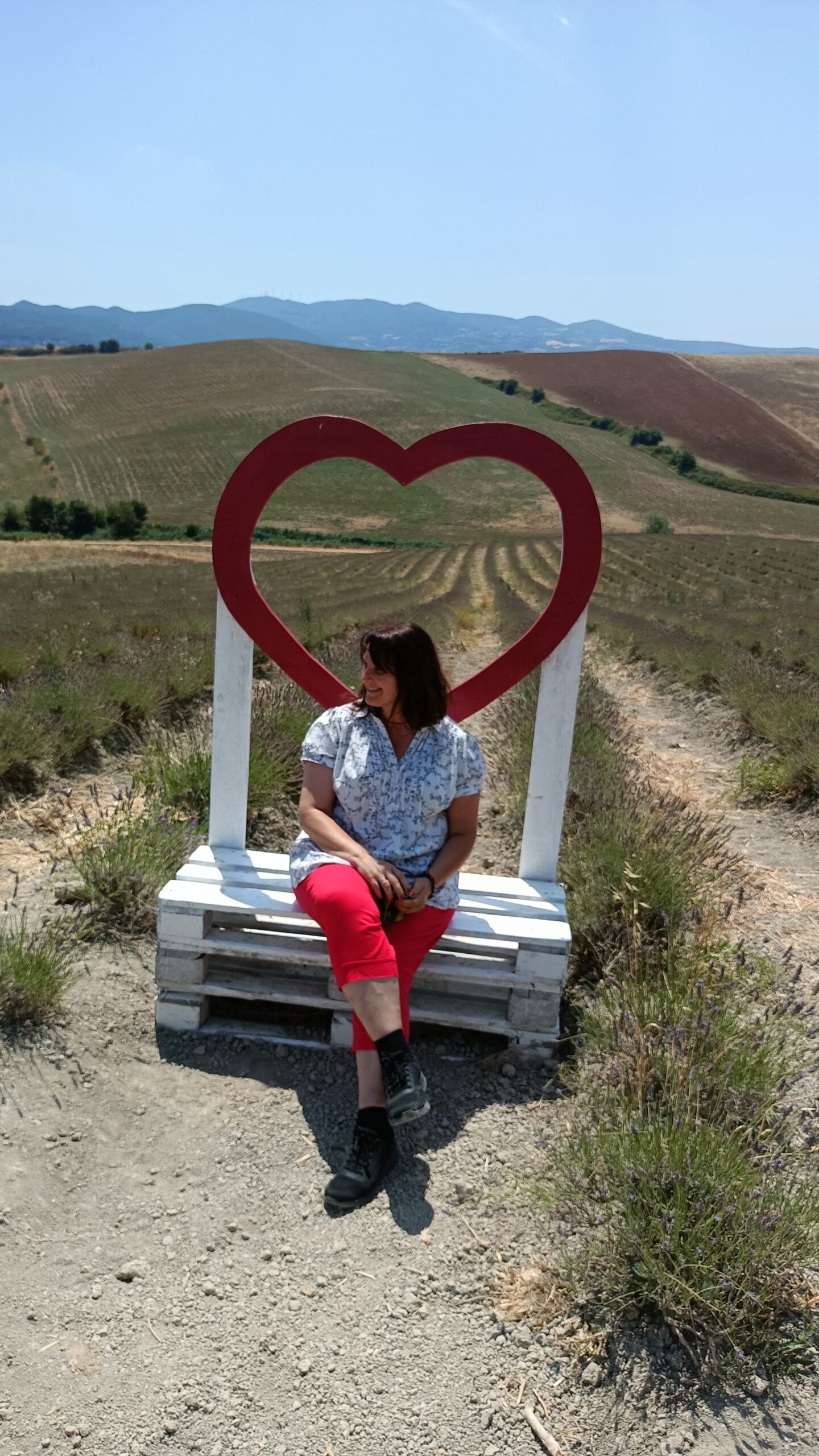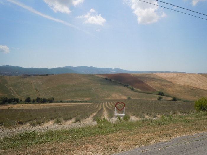 Ze względu na wielkie upały w ostatnich dniach niektóre pola lawendy mają zgaszony kolor. W Mandriato została ustawiona ławka z sercem gdzie można robić zdjęcia.