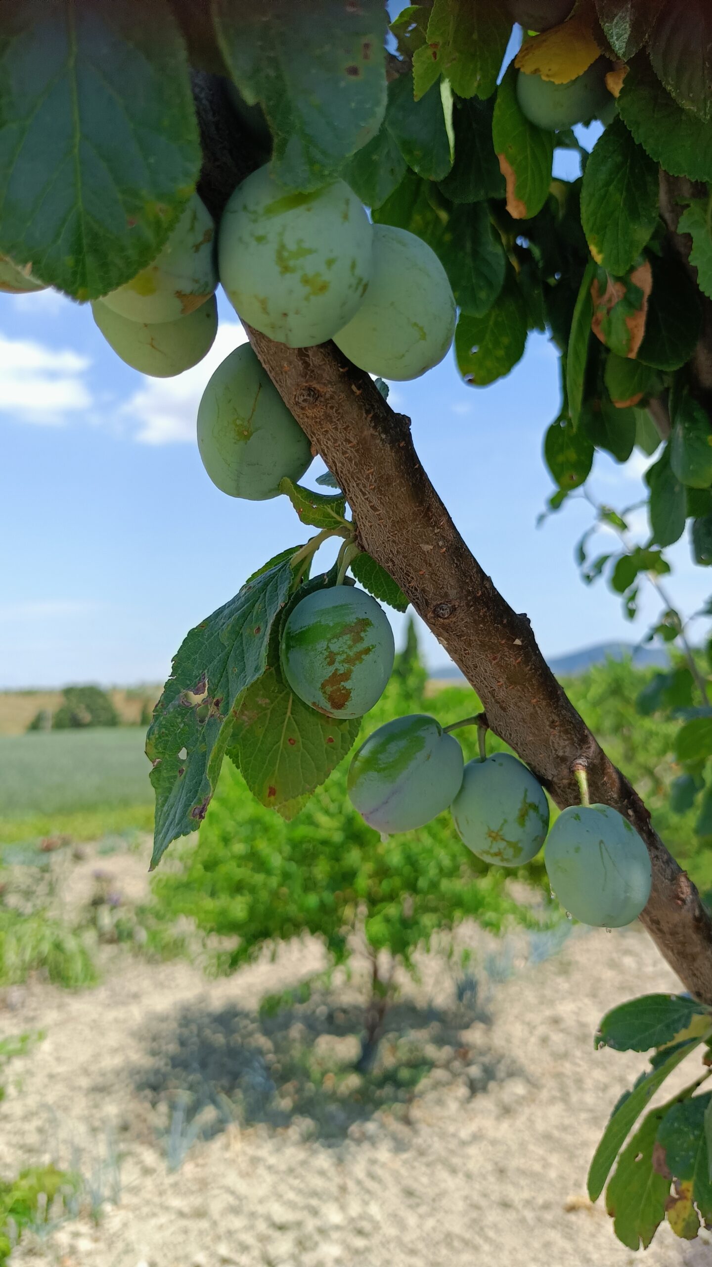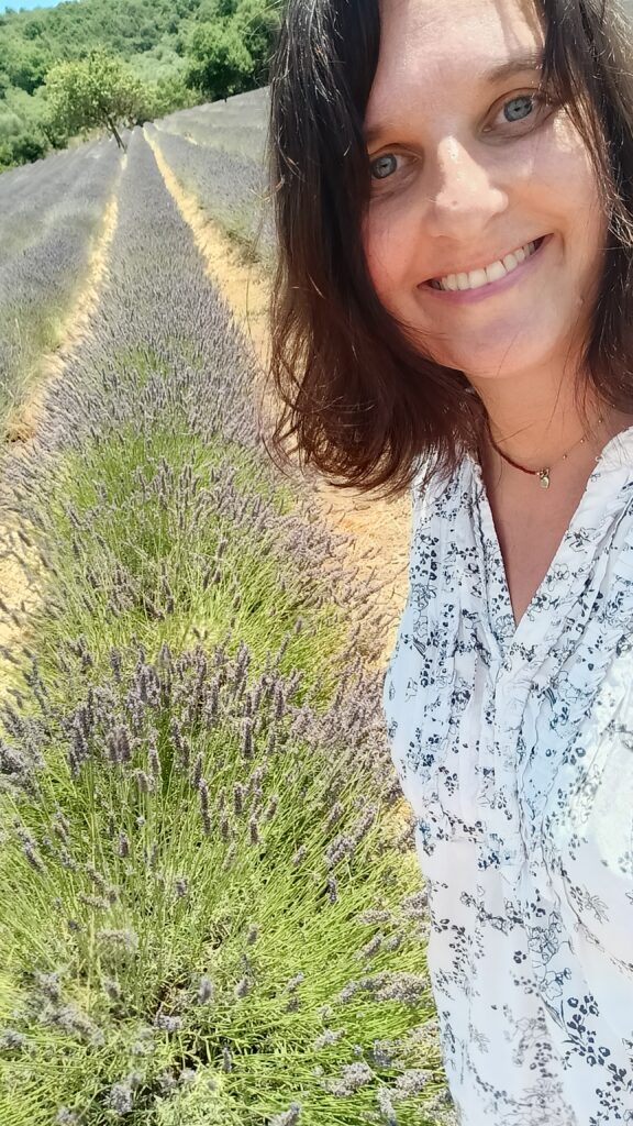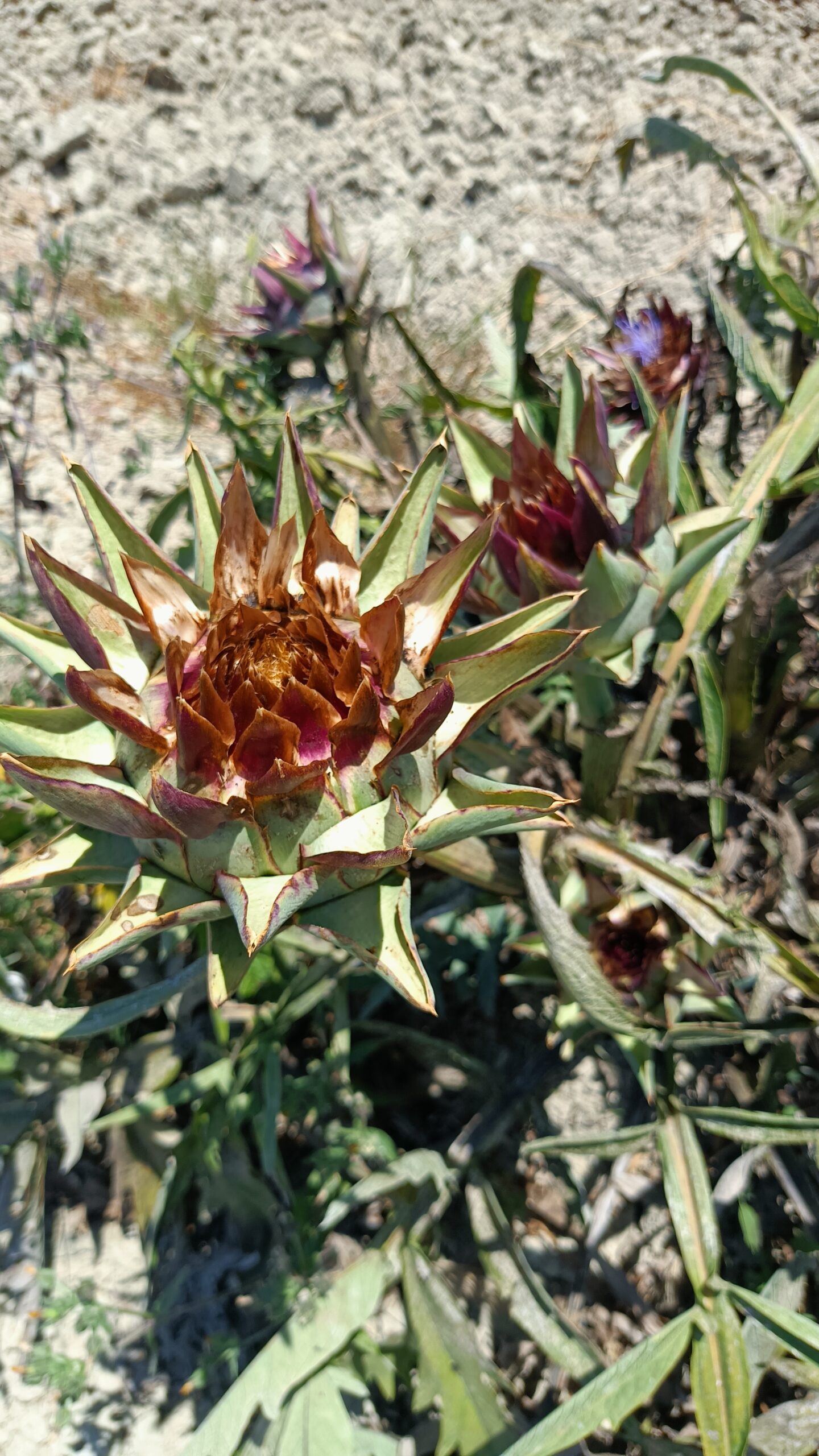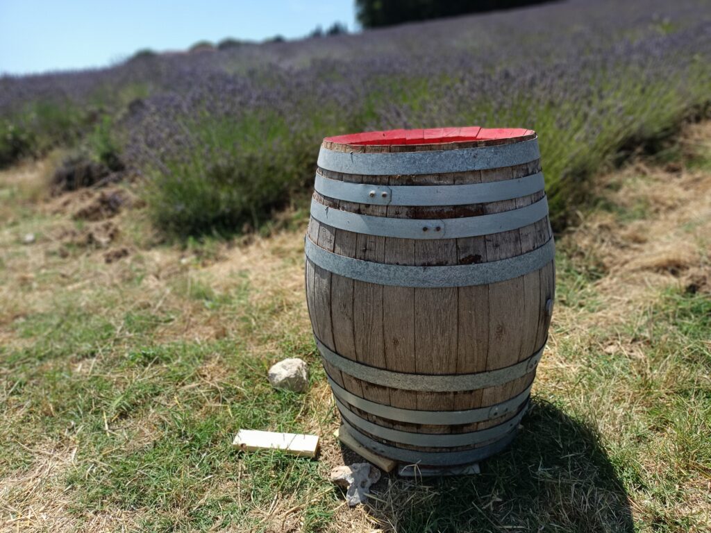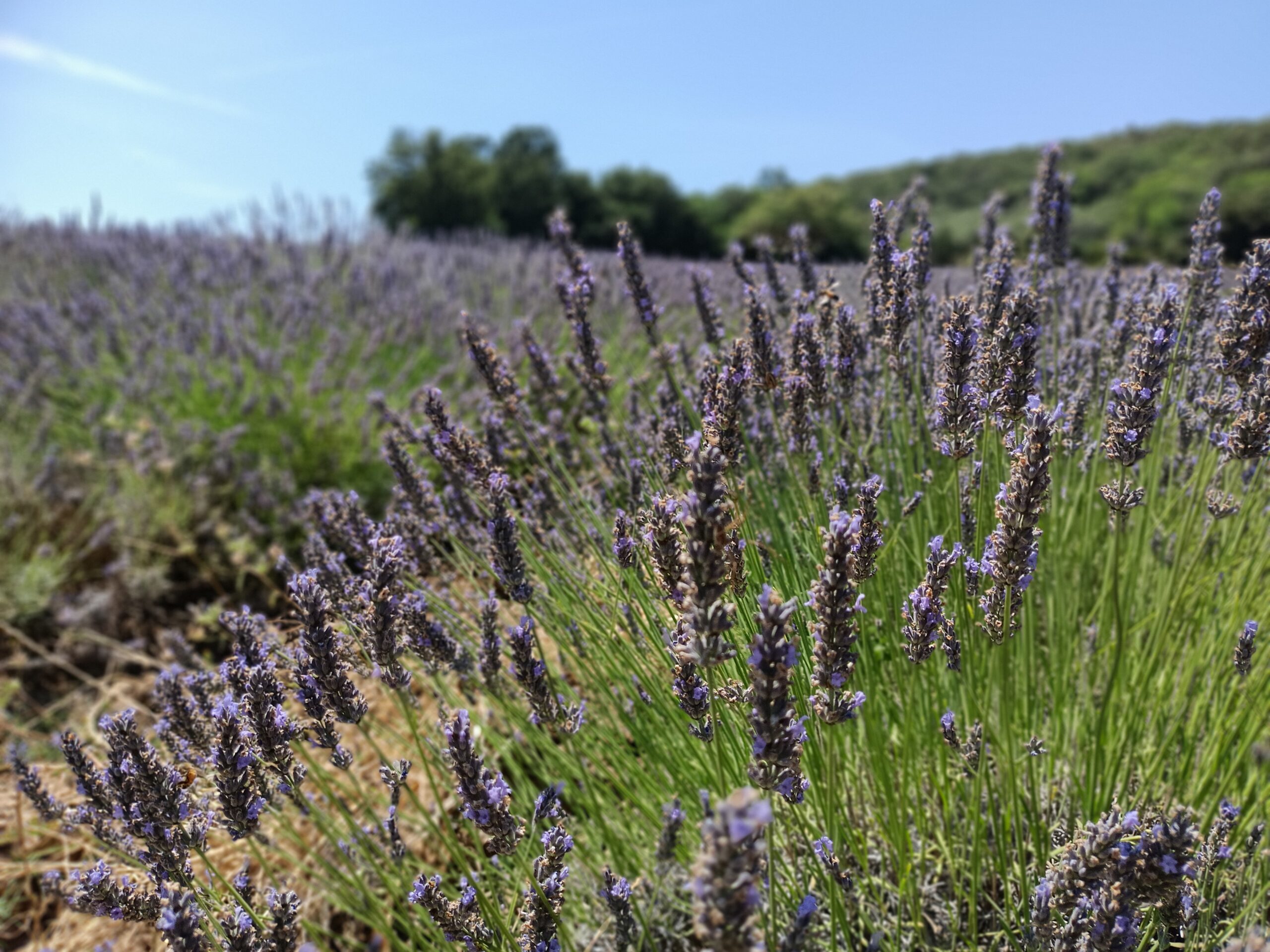 W dniu, w którym byliśmy było 46 stopni. Byliśmy jedyni. Nie za bardzo wiedzieliśmy gdzie to pole lawendy znajduje się, więc poszliśmy w stronę domostw. Zauważyliśmy ogromne drzewo figowe, rząd karczochów, które przekwitły, śliwę i jeden rząd lawendy.