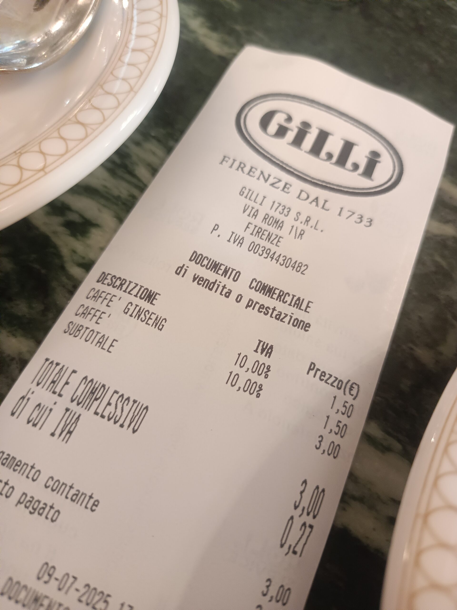 Kawa jest pyszna. Zarówno espresso jak i gingseng kosztują tylko 1.50 euro.