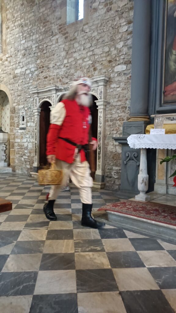 Następnie w kościele odprawiana jest Msza Święta. Na ołtarzu oraz po prawej stronie stały osoby przebrane w dawne stroje.