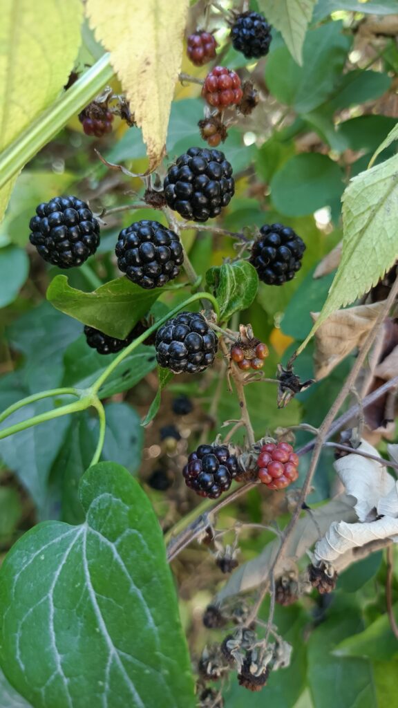 W tym roku było trochę więcej jeżyn niż w zeszłym (chodzi mi o to samo miejsce, w innych jeszcze nie wiem jaka jest sytuacja). Mogło być jeszcze więcej, ale wzdłuż drogi niedawno musieli przejechać traktorem i ściąć krzaki.