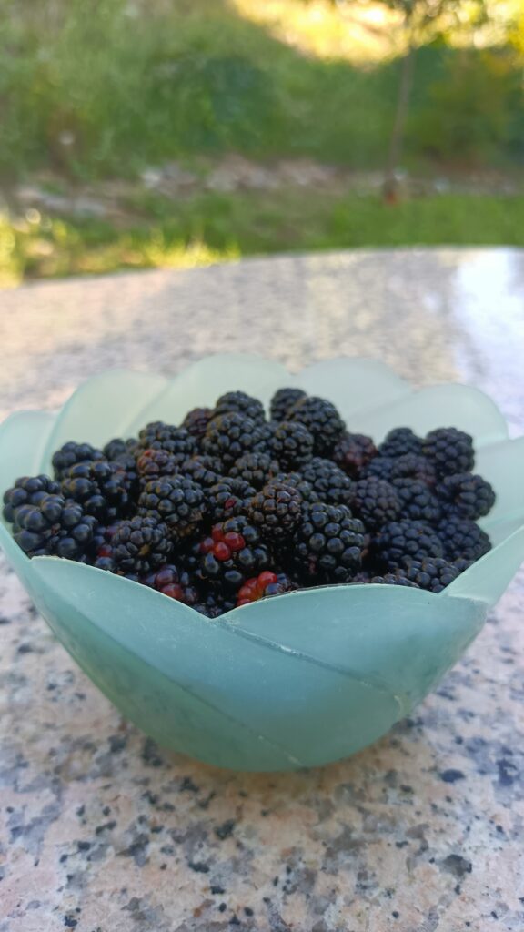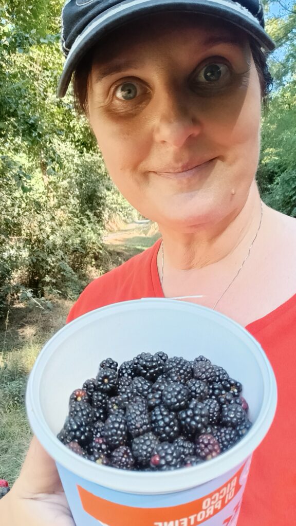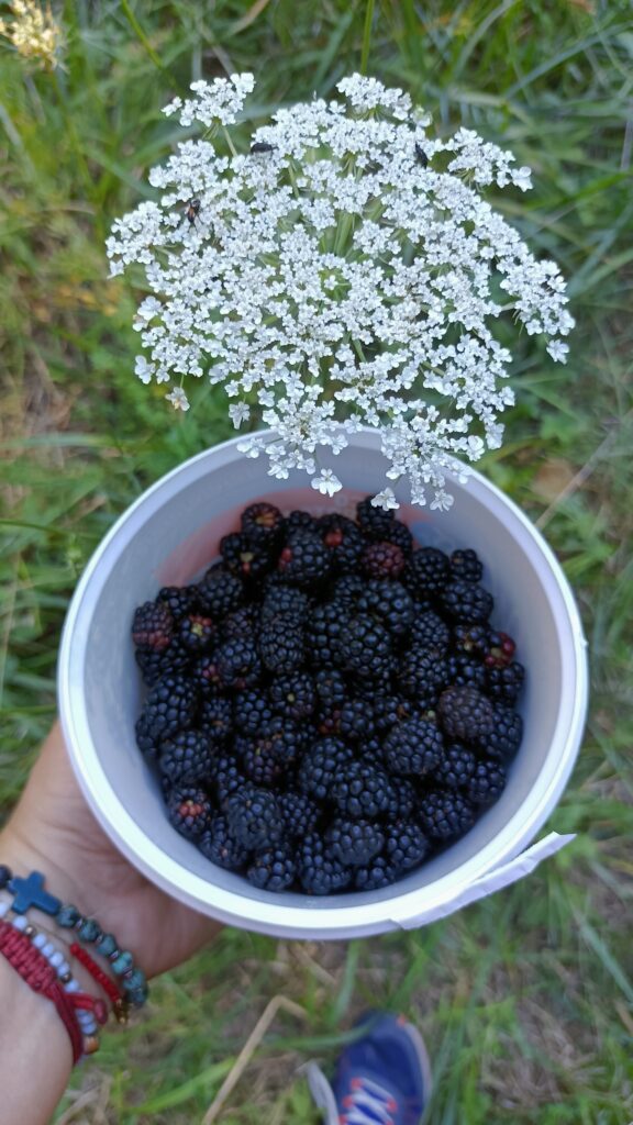 Wczoraj dzień upłynął na zbieraniu jeżyn. Temperatura trochę odstraszała, bo kiedy ruszałam spod domu termometr w aucie wskazywał prawie 50 stopni…