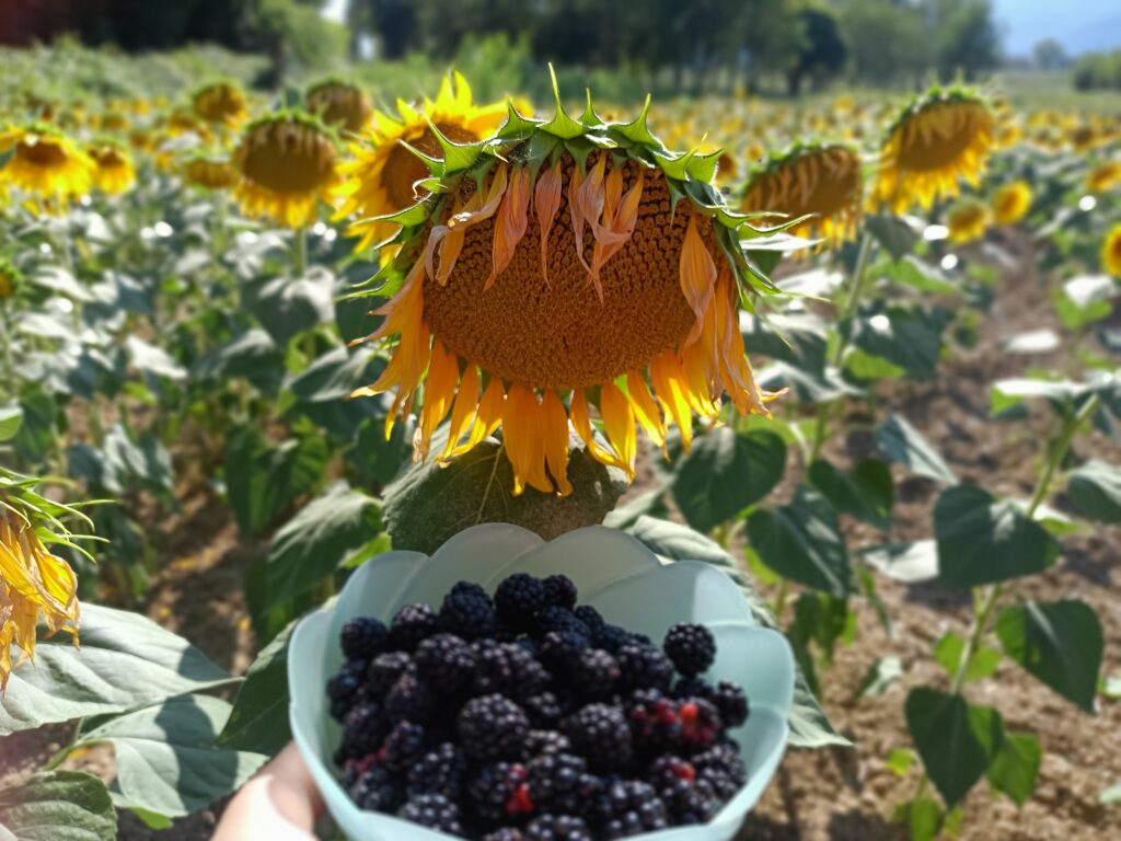 Zbieramy jeżyny, a wokoło pola słonecznikowe