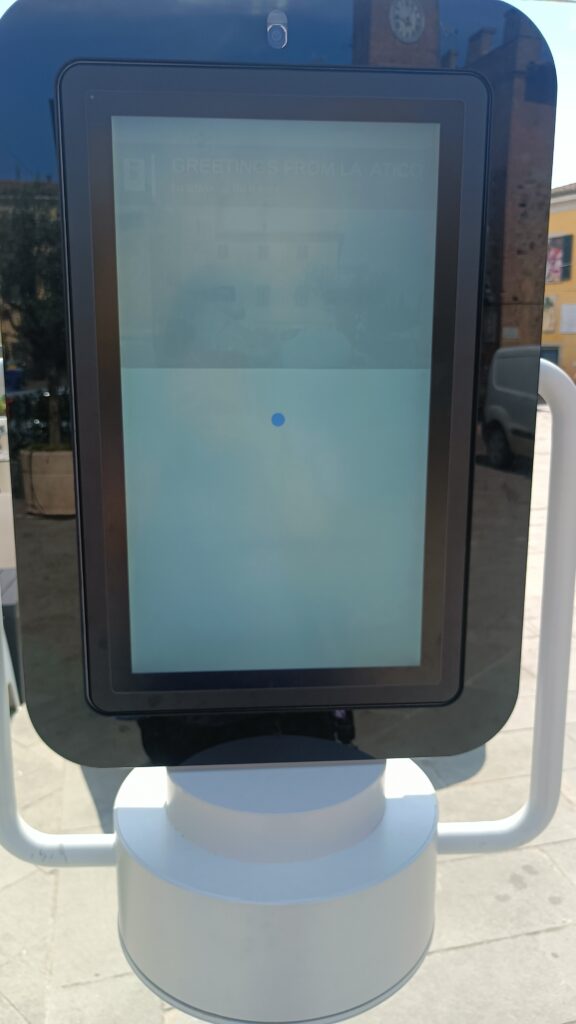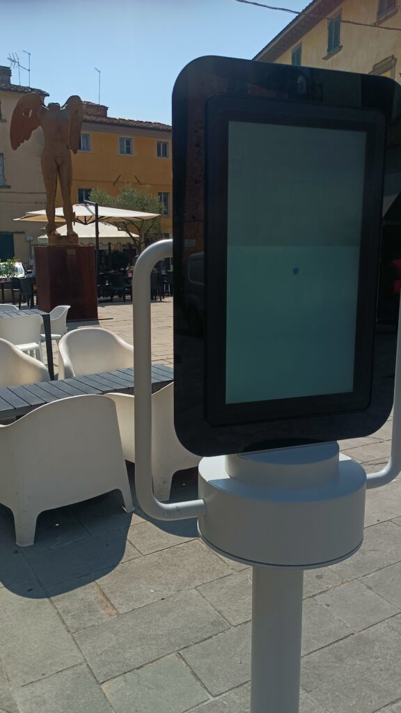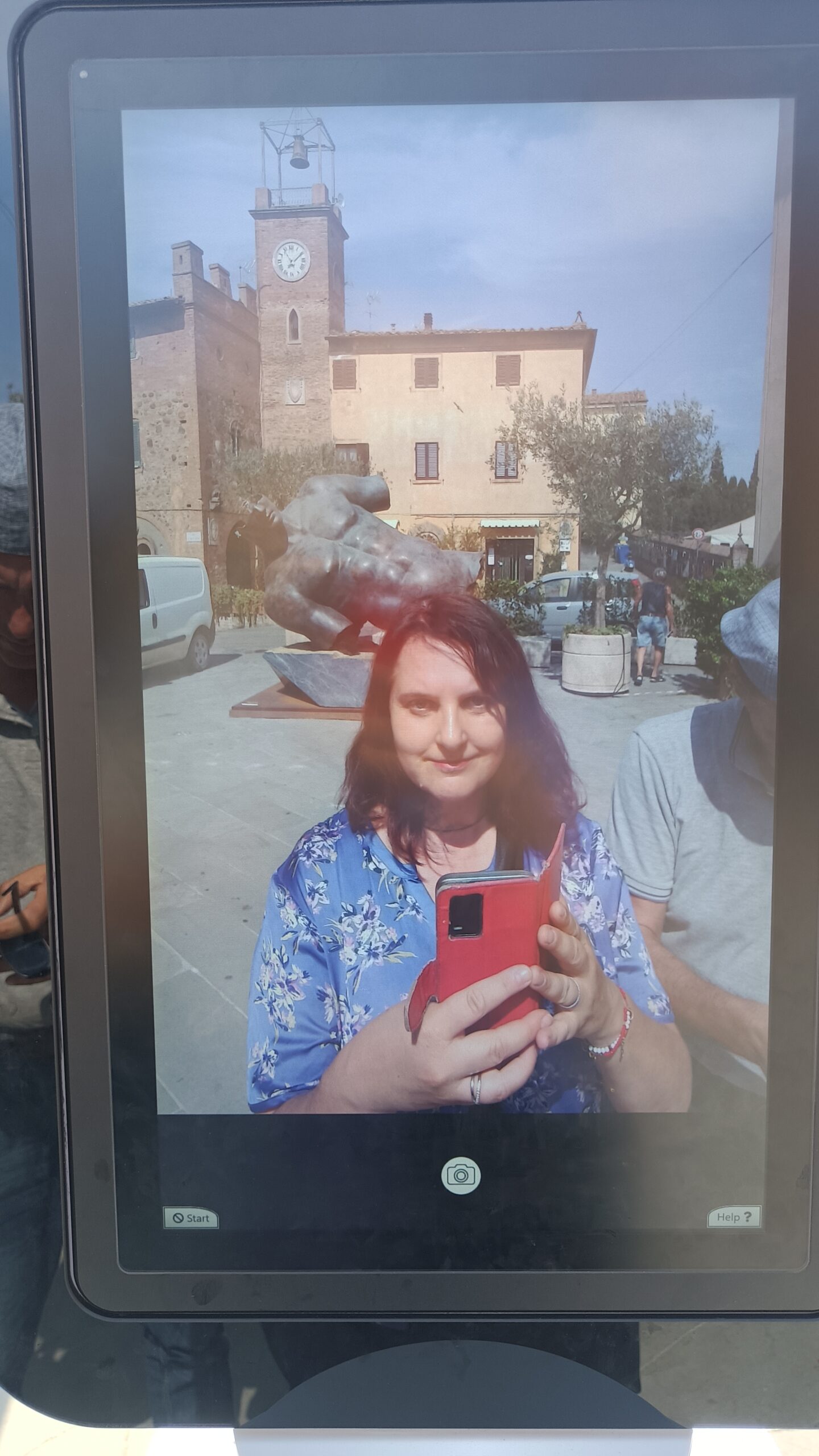 Selfie na Placu Vittorio Veneto w Lajatico. Czy panel cyfrowy działa czy nie?