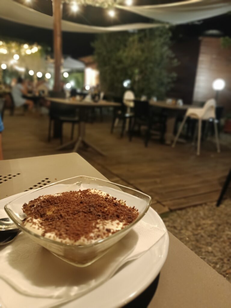 Na deser zamówiliśmy tiramisù. Delikatne, posypane startą czekoladą (nie kakao).