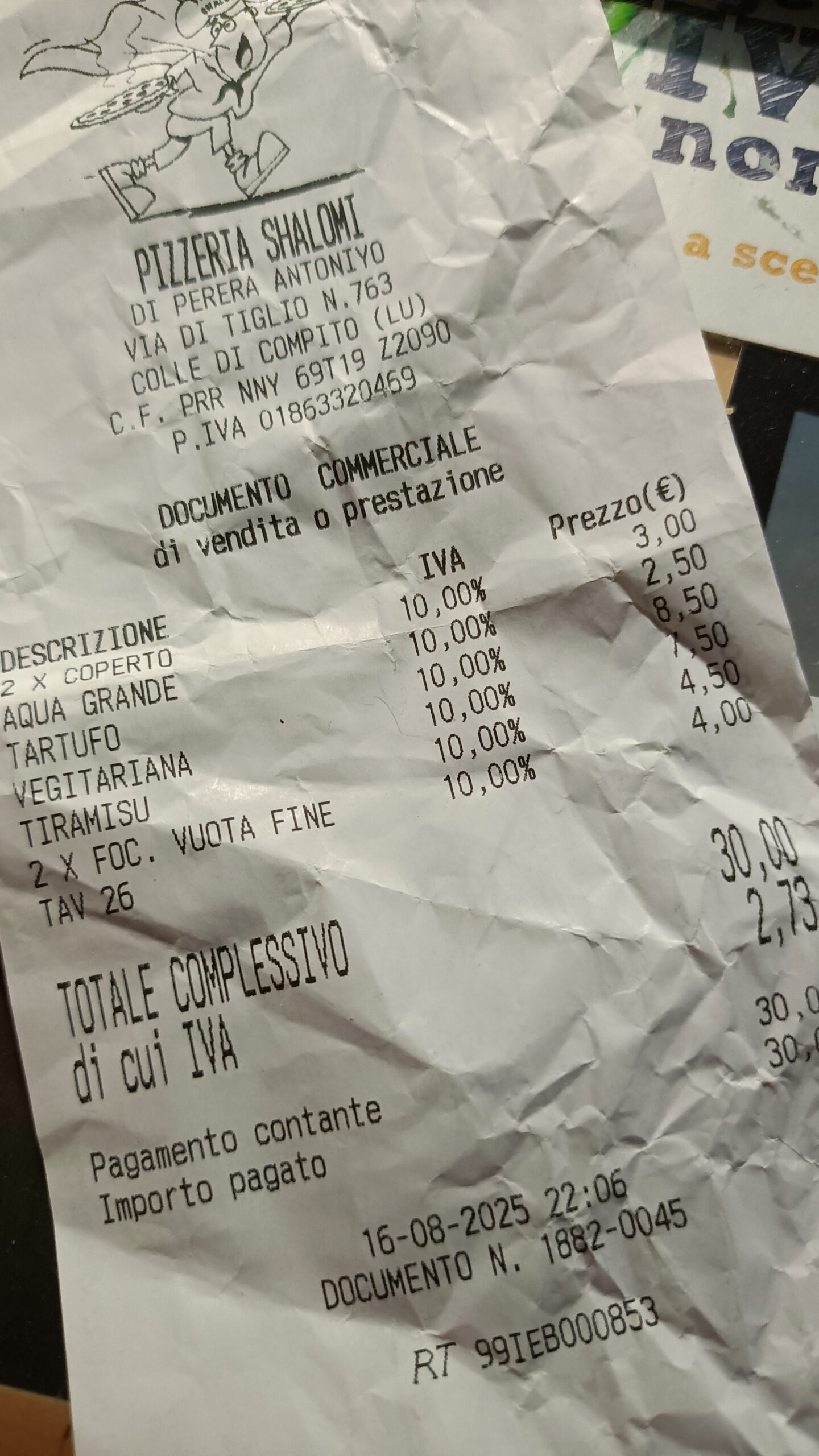 Coperto czyli nakrycie kosztowało 1.50 euro od osoby. Ostatnio „nakryciowe” dochodzi do 2.50 euro w normalnych lokalach (żadnych luksusach). Deser kosztował 3.50 euro, gdzie ostatnio ceny doszły do 7 euro. Pizza 7.50 i 8.50 euro, gdzie w innym miejscu za tartufatę zapłacilibyśmy minimum 14 euro. Jedna focaccia 2 euro. Takich cen już po prostu nie ma w innych lokalach.
