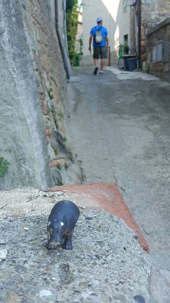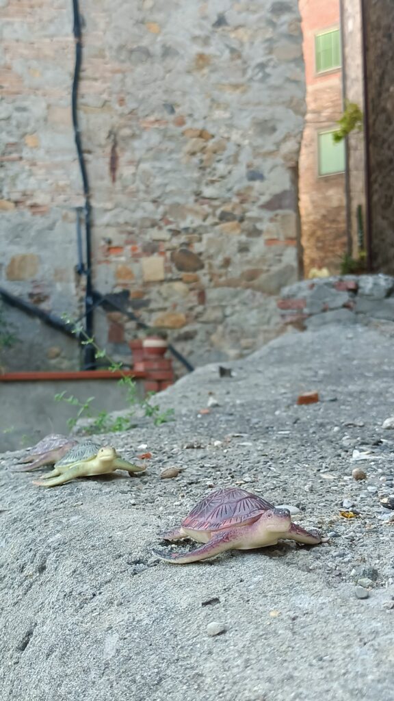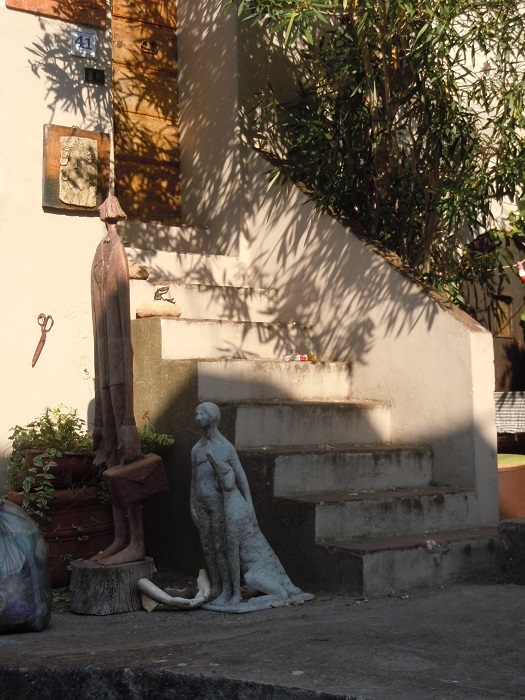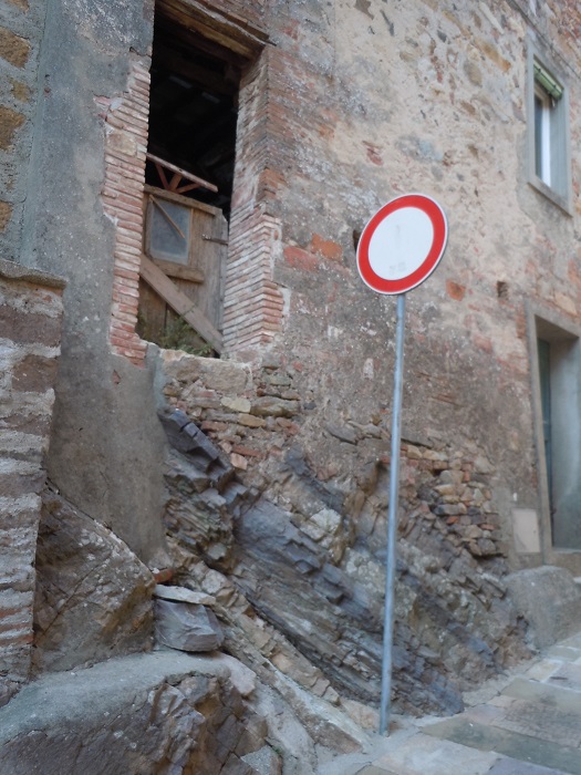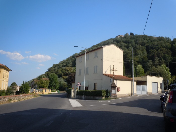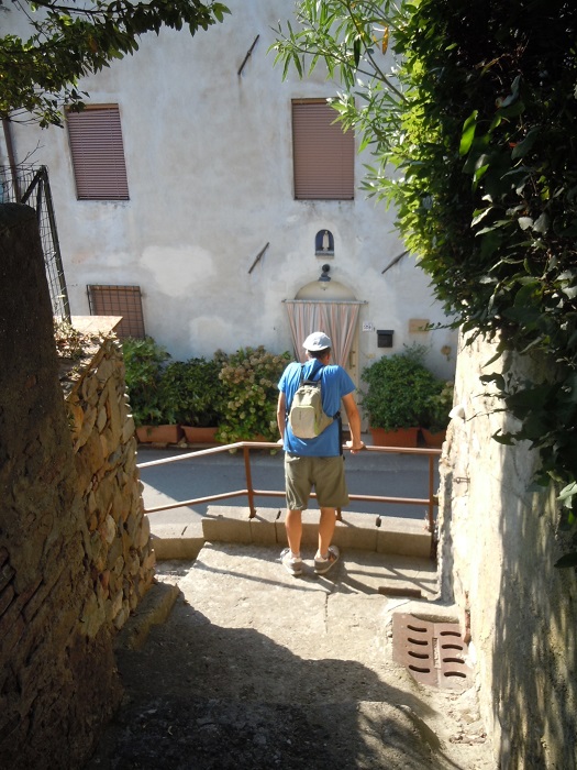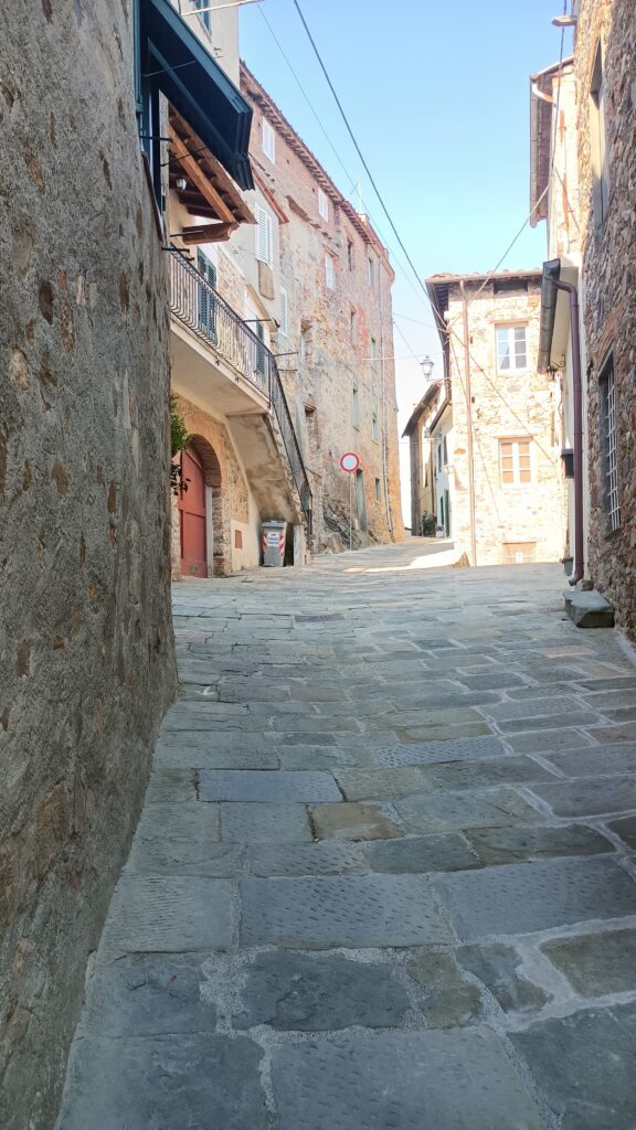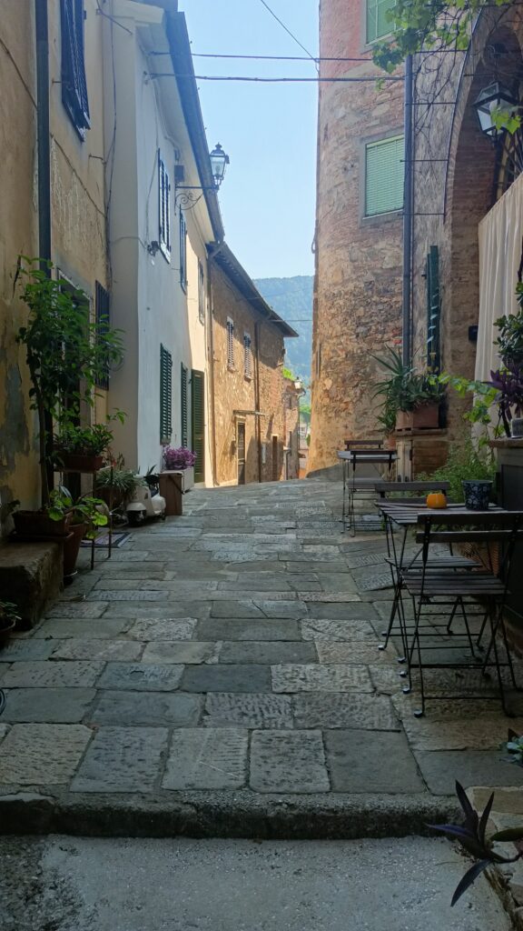 W barze jeden pan wyjaśnił, że to jest też Castelvecchio di Compito, ciąg dalszy miasteczka z dołu. Postanowiliśmy zerknąć na nie z bliska. Podjechaliśmy niezbyt szeroka drogą. Zostawiliśmy auto tuż przed wjazdem, przy drodze był mały parking. Przez samo miasto przejeżdża droga, ale jest wąska i oczywiście dwukierunkowa.