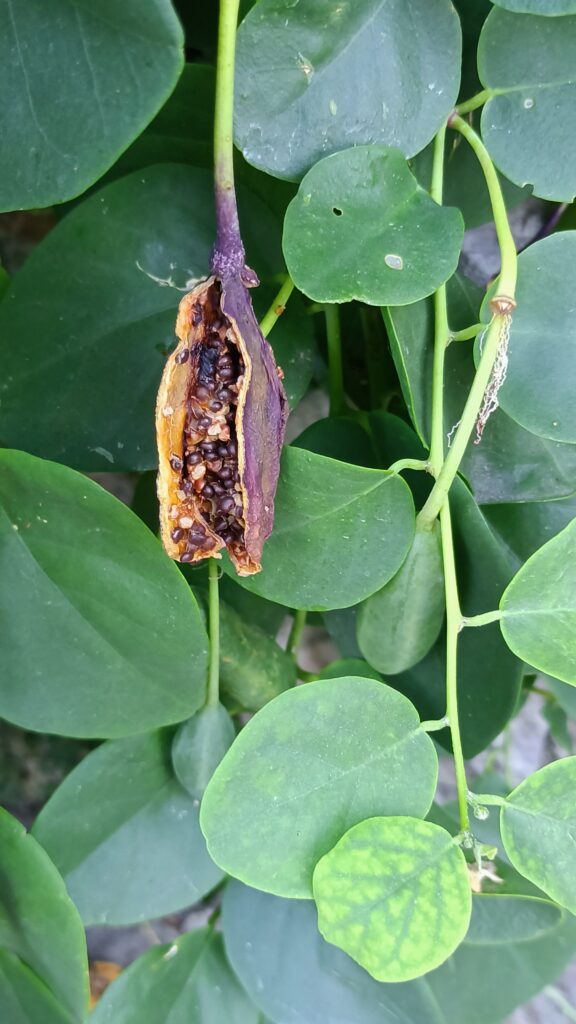 Za figowym drzewem rosła śliwa pełna owoców. Namówiliśmy pana, żeby koniecznie je zebrał.