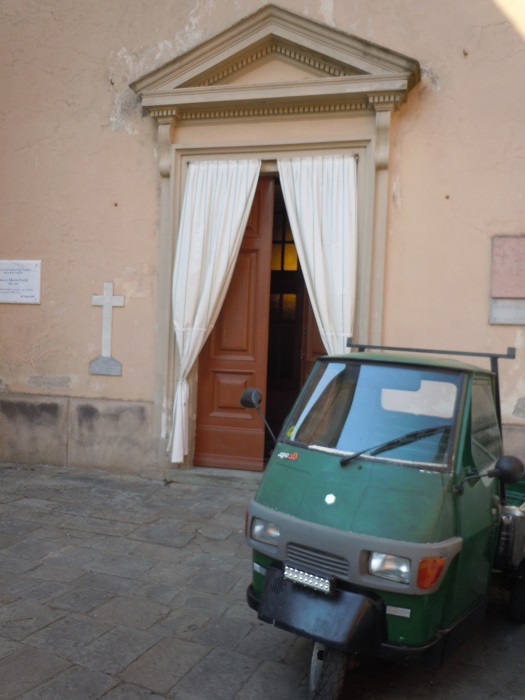 Dotarliśmy do kościoła Świętego Andrzeja. Przed nim stała stara Ape.