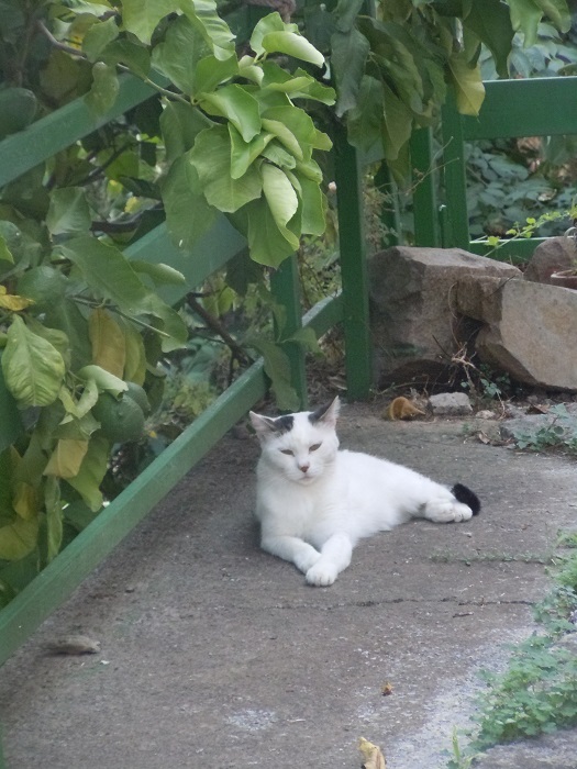 Mieliśmy okazję spotkać leniwie wypoczywające koty. Jeden pozował do zdjęcia, drugi przebudził się i chciał się bawić.