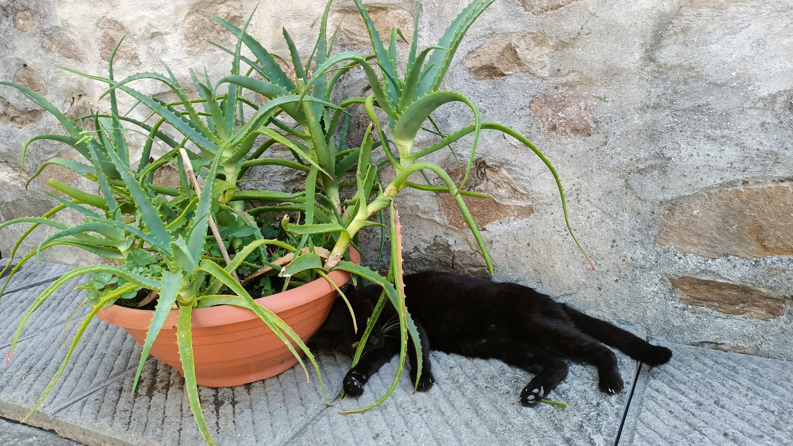 Mieliśmy okazję spotkać leniwie wypoczywające koty. Jeden pozował do zdjęcia, drugi przebudził się i chciał się bawić.