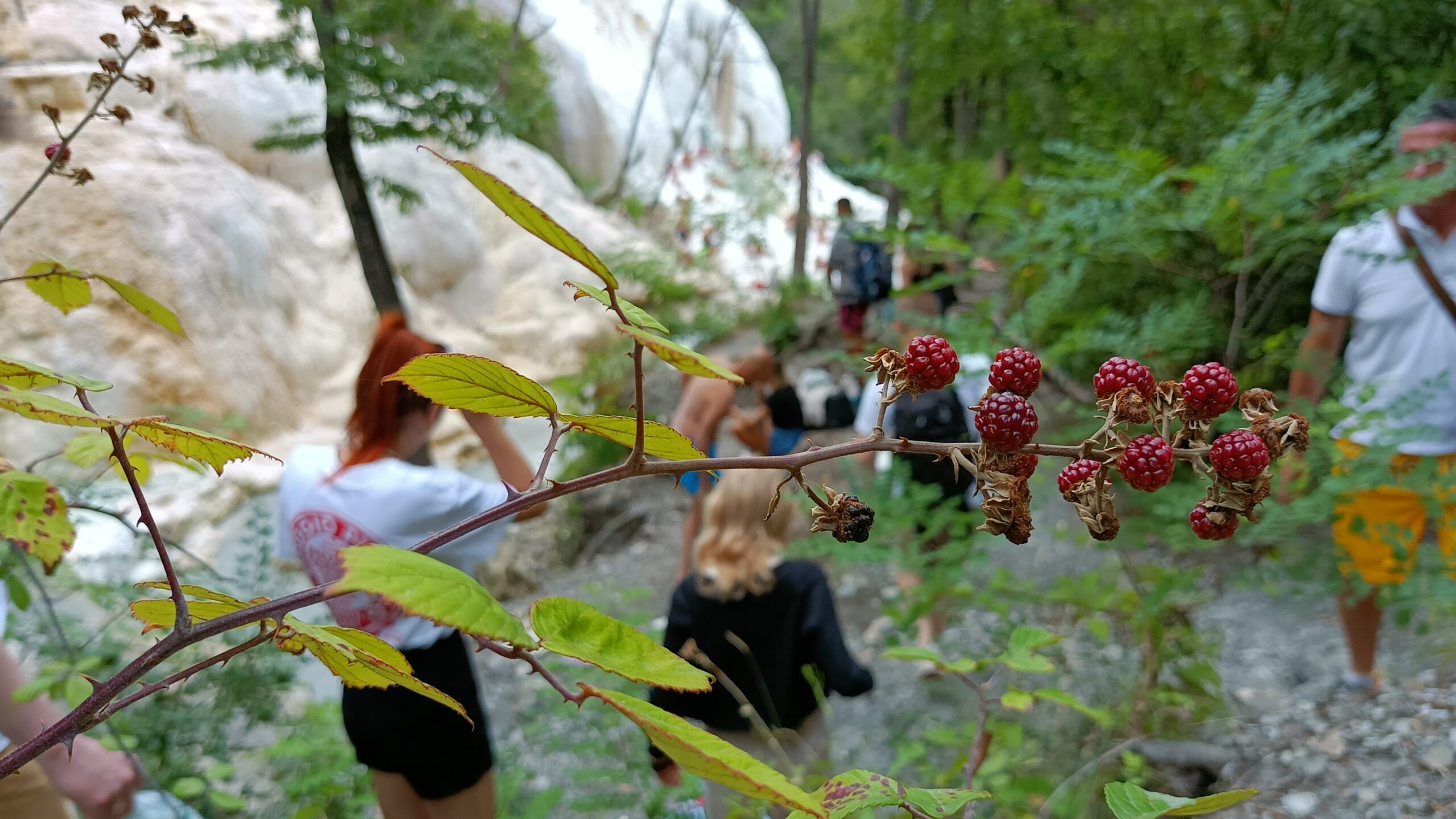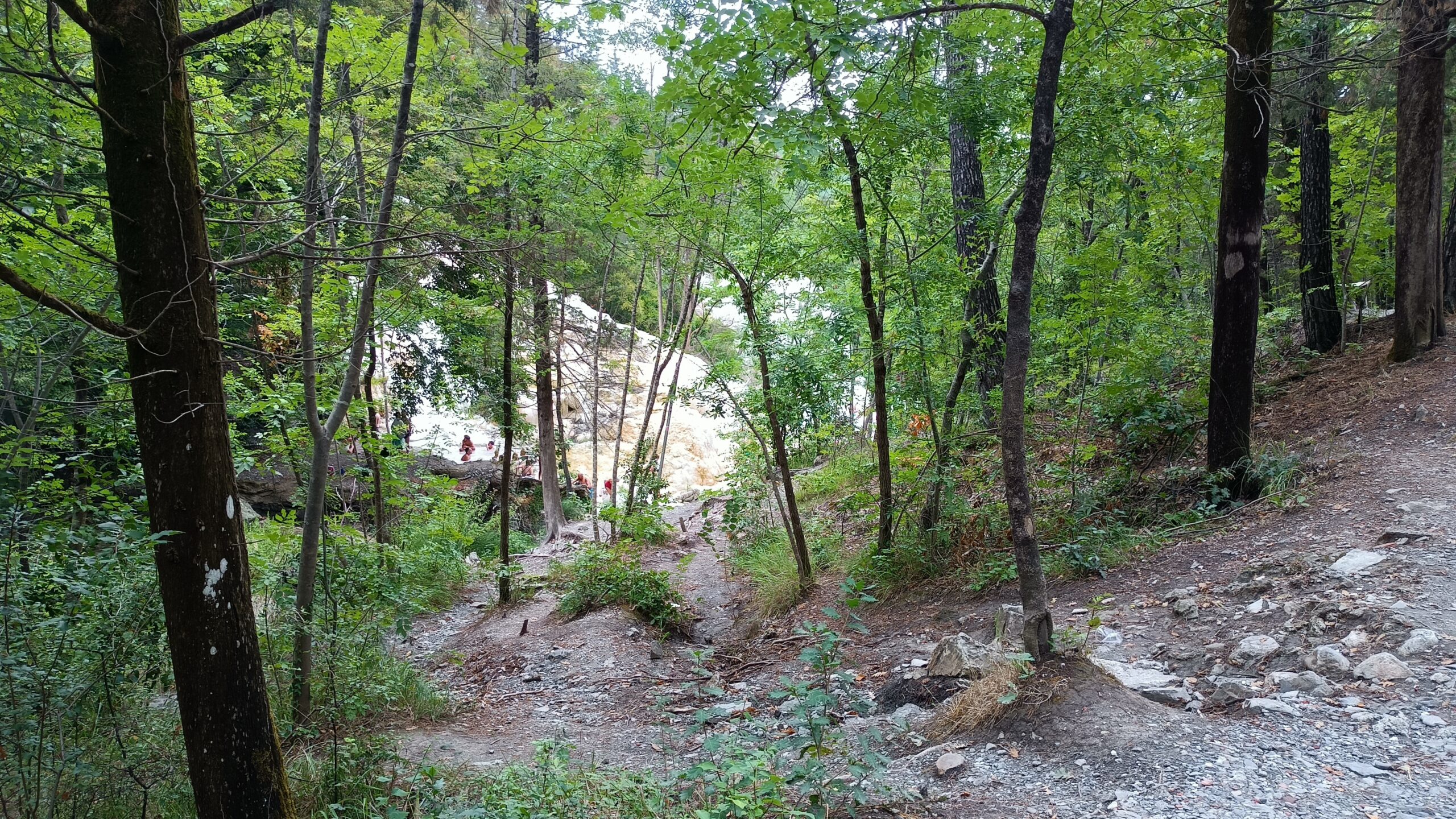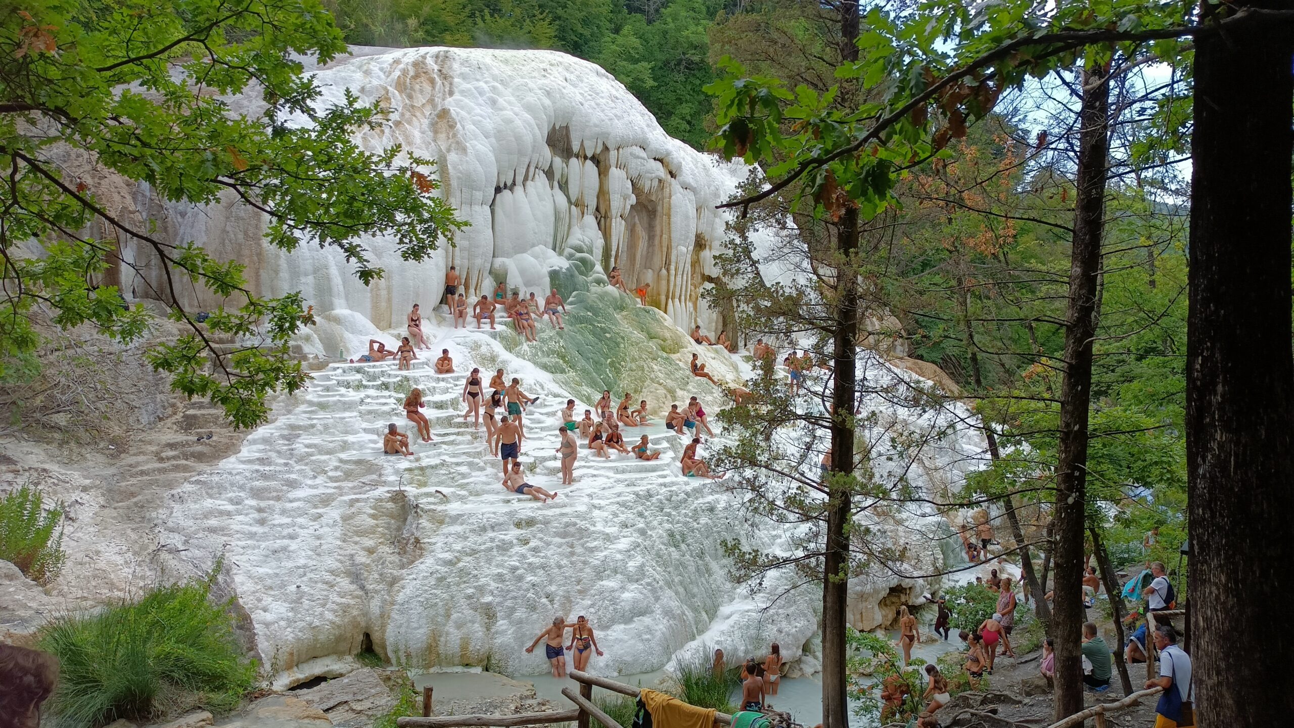 Mnóstwo ludzi siedzących w wodzie czy w miejscach gdzie woda spadała i można było moczyć plecy. Osoby, które wspinały się na samą górę i moczyło się przez wiele minut.